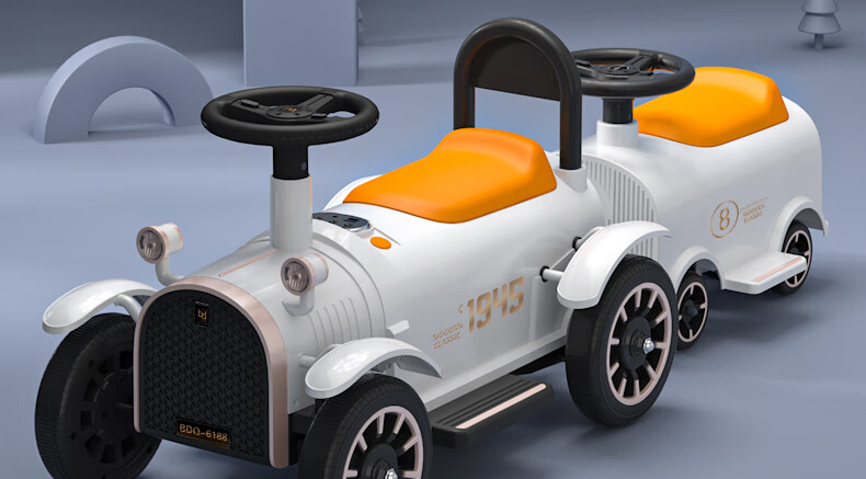 Ercheque children's small train can seat one person electric car four-wheel remote control car boy and girl double baby adult toy stroller battery life upgrade white locomotive + one car dual drive