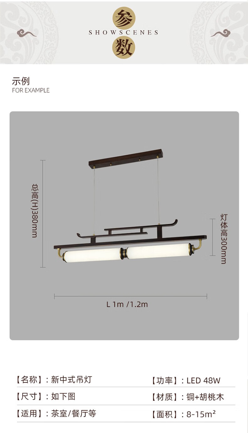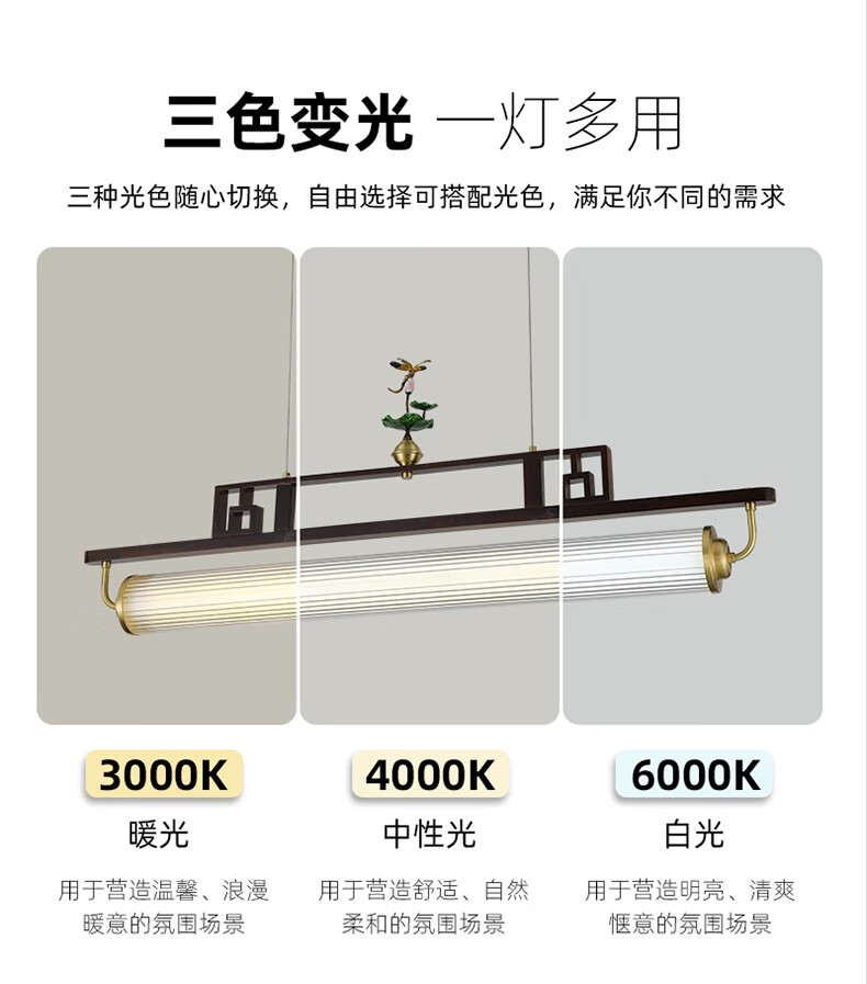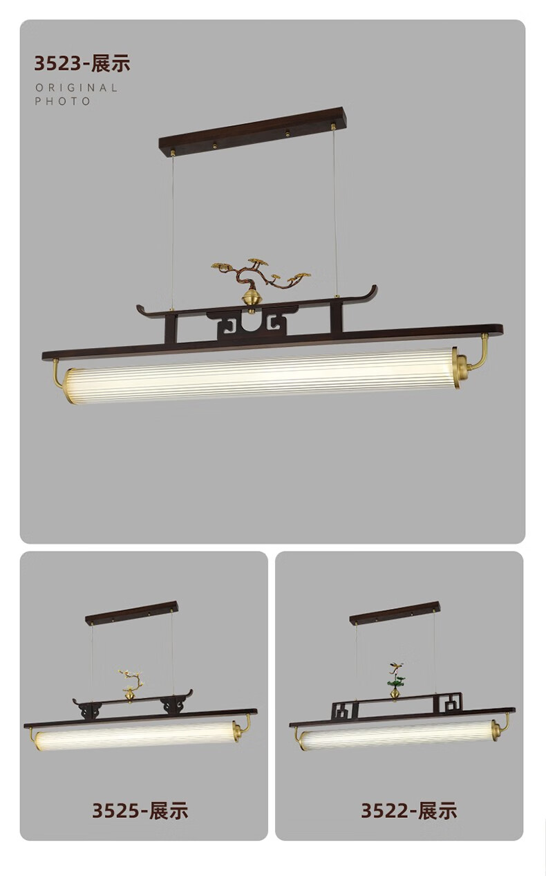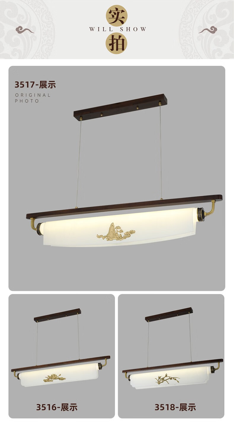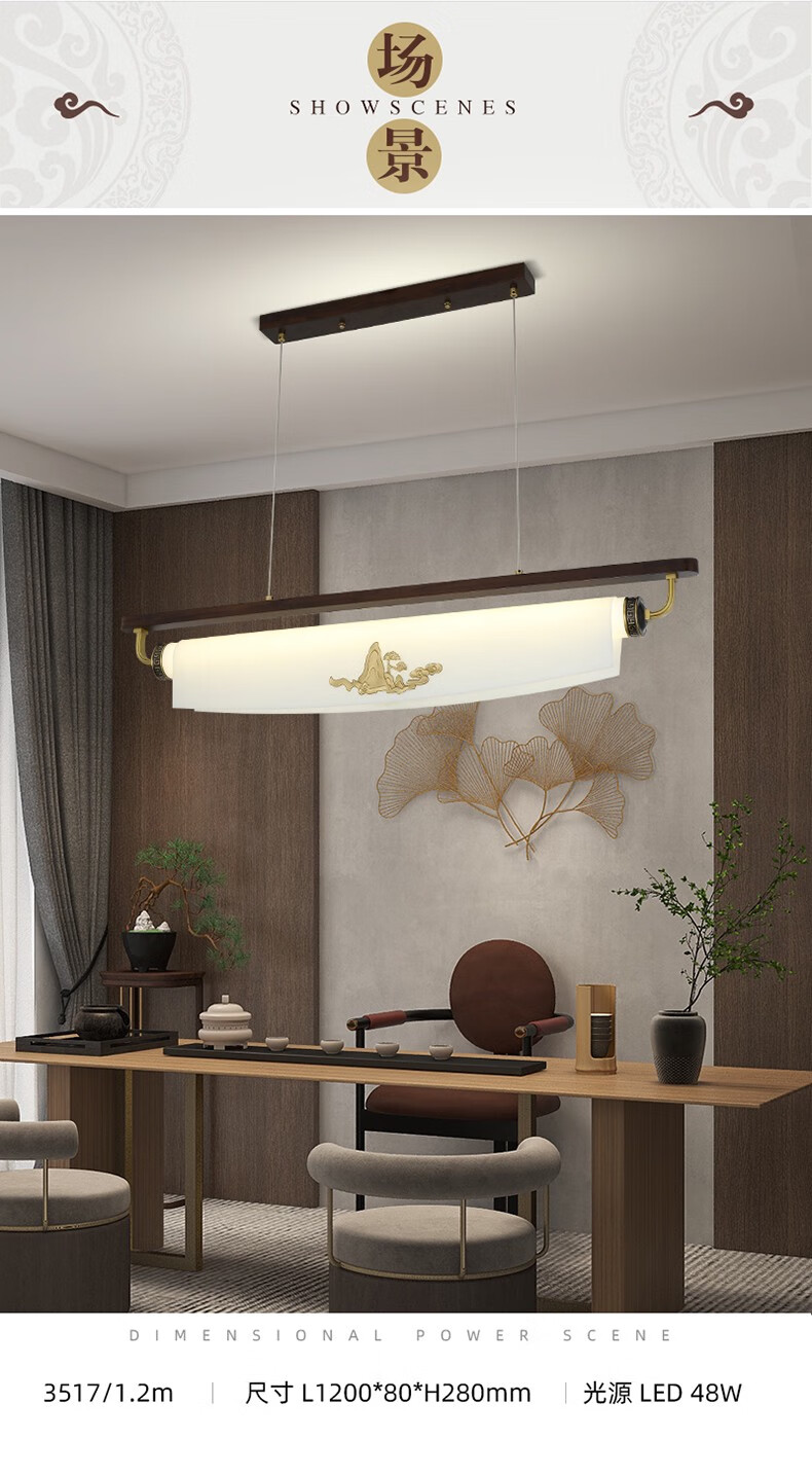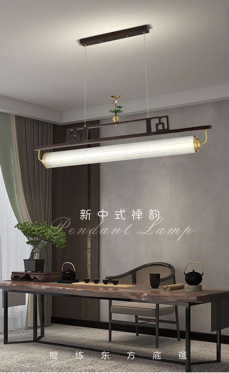 雷士2025最新款新款新中式茶艺灯中国风茶室书房餐厅艺术胡桃木亚克力 迎客松-3523-1m款三色变光
