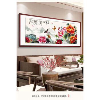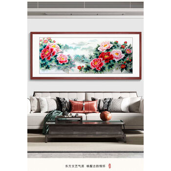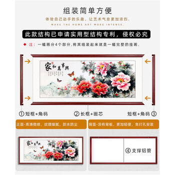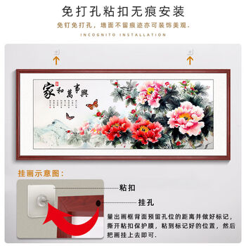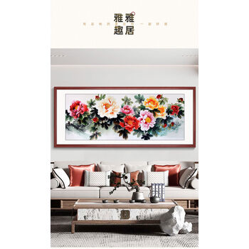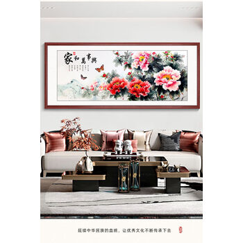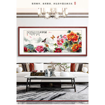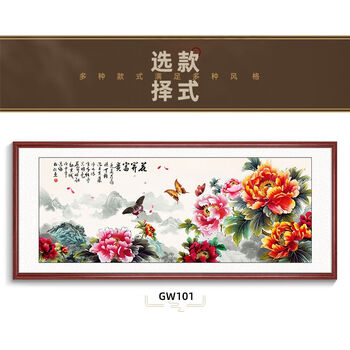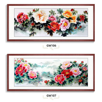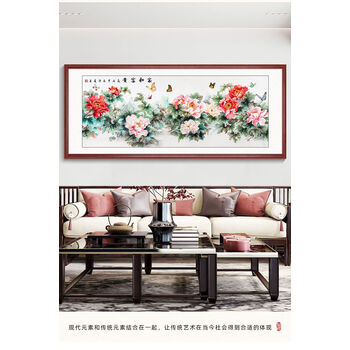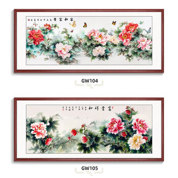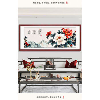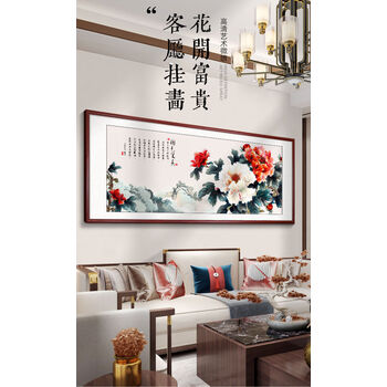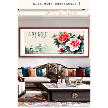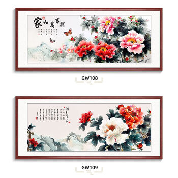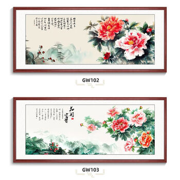 Chinese style Chinese painting office peony hanging painting Chinese living room decoration painting sofa restaurant background wall painting 12353cm red walnut wood grain aluminum alloy frame crystal porcelain surface thickened PET painting core GW107 frame width 22cm