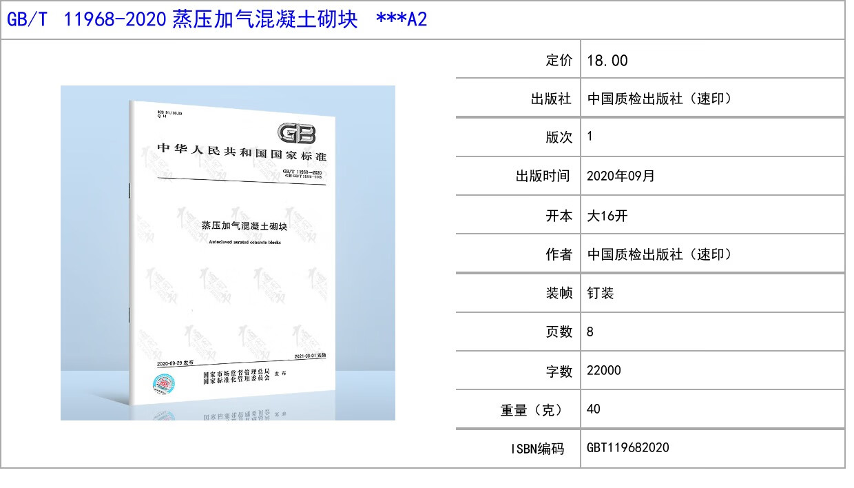 Ready stock GB/T 11968-2020 autoclaved aerated concrete blocks instead of GB 11968-2006 GB/T11968-2020 autoclaved aerated concrete blocks