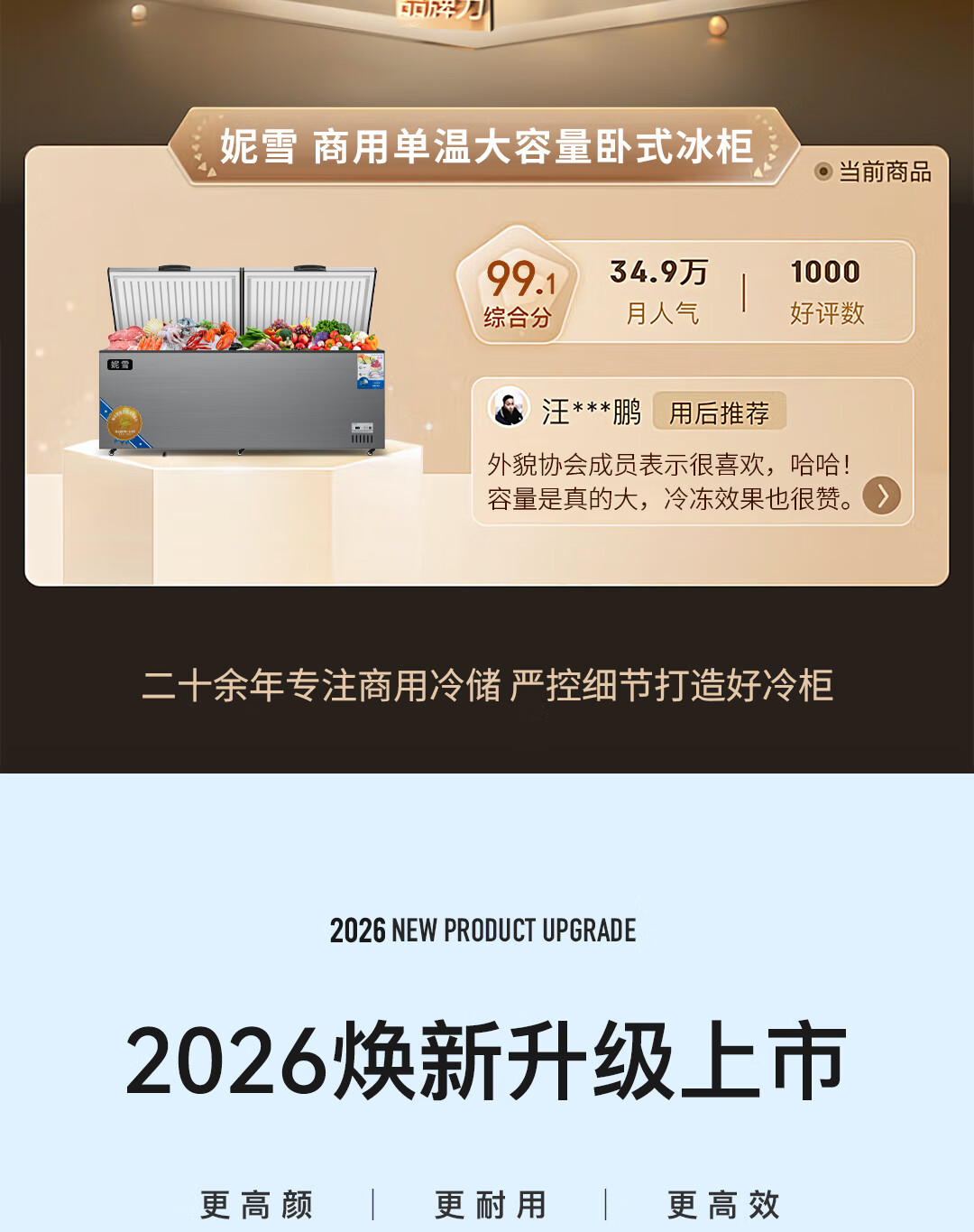Nixue Freezer Commercial Household Freezer Horizontal Large Capacity Full Freezer Display Cabinet Frozen Refrigerator Large Freezer 688 Single Temperature Copper Tube-Xingyao Gray Intelligent Temperature Control Expansion Edition Level 1 Energy Consumption