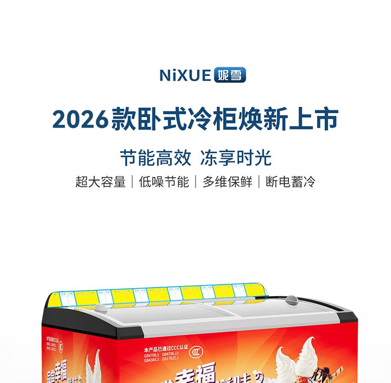 妮雪超市冰柜商用展示柜卧式冰柜商用冷柜冷藏冷冻柜雪糕柜保鲜柜冰糕柜冰淇淋柜透明玻璃冰柜 688雪糕柜1.8m长【铜管带贴画价格条】