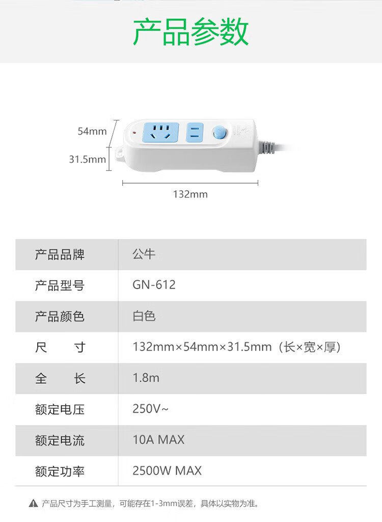 BULL socket/socket board/socket strip/socket strip/terminal board/trailer board 2-position master control total length 1.8 meters GN-612