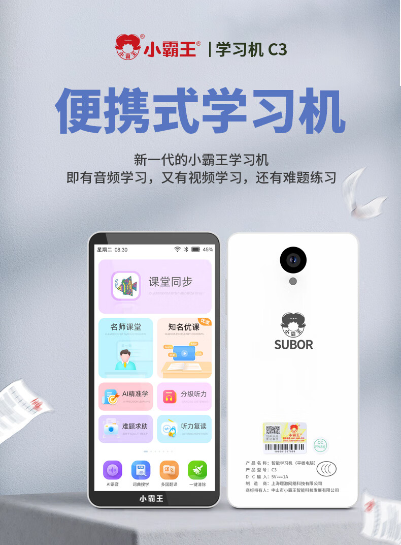 Xiaobawang Flagship Pocket Learning Machine Universal Tablet English Point Reading Machine for First Grade to High School Students Learning Artifact Textbook Synchronization English Tutoring Machine Repeater C3 5.5-inch Portable Mini Pocket Learning Machine Standard x 16GB