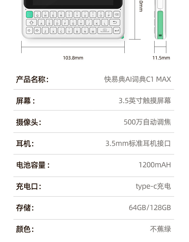 Cadeau scolaire Kuaiyidian Dictionnaire électronique de machine à mots Kuaiyidian AI C1 Machine d'apprentissage de l'anglais artefact vacances d'été cadeau d'anniversaire pour les enfants et les étudiants C1_MAX64G_Dictionnaire trilingue chinois, anglais et japonais avec norme de 64 Go