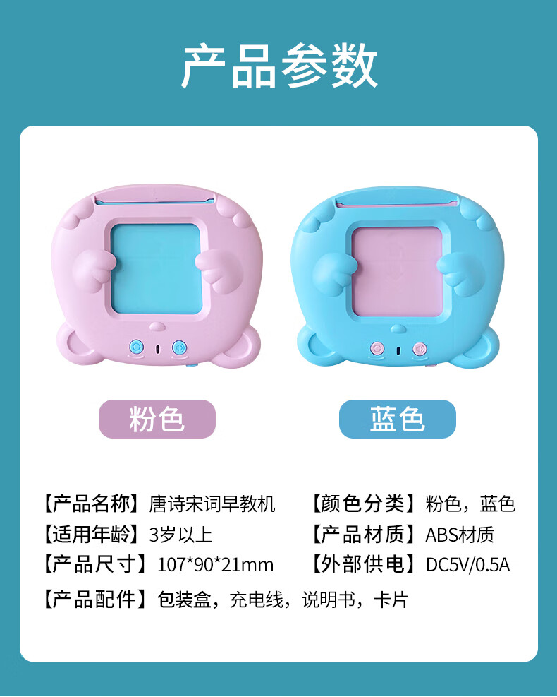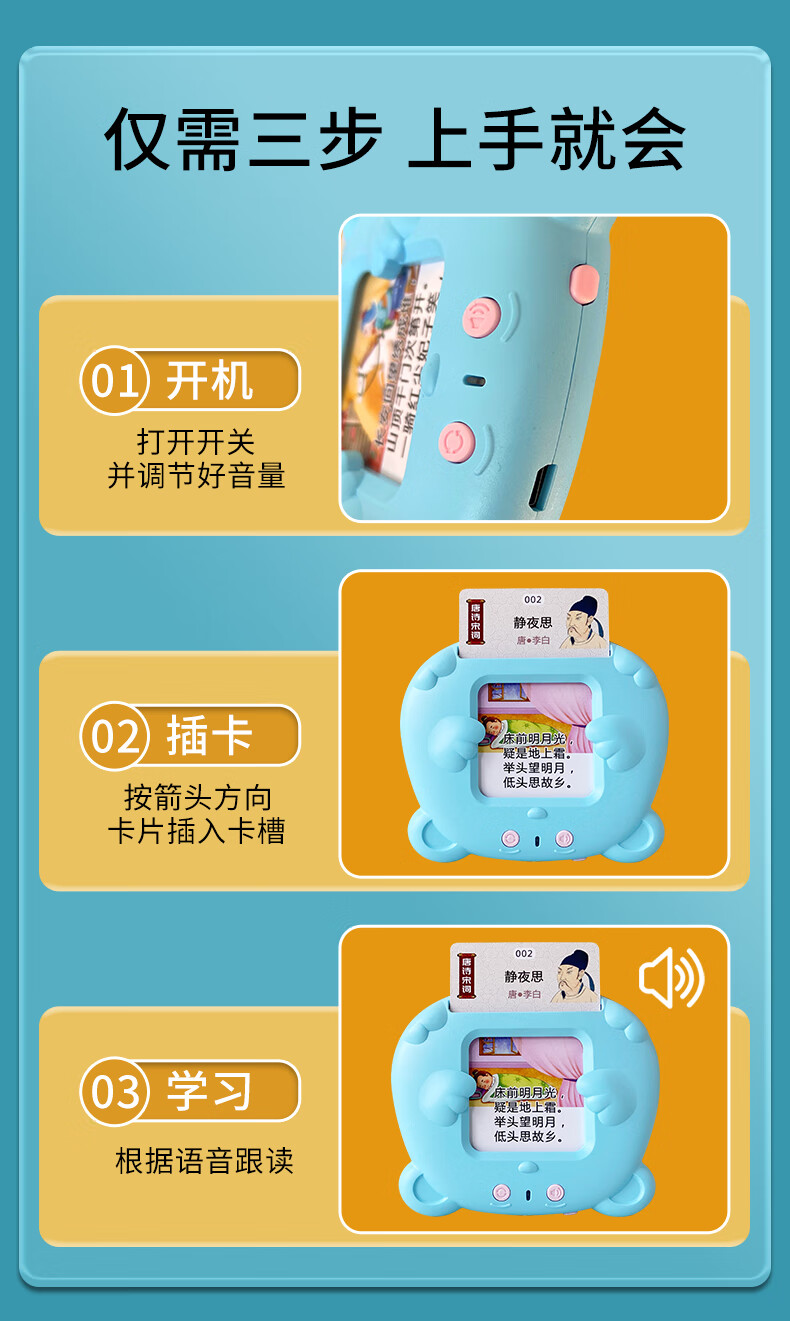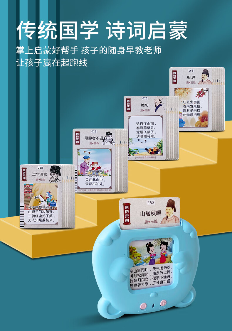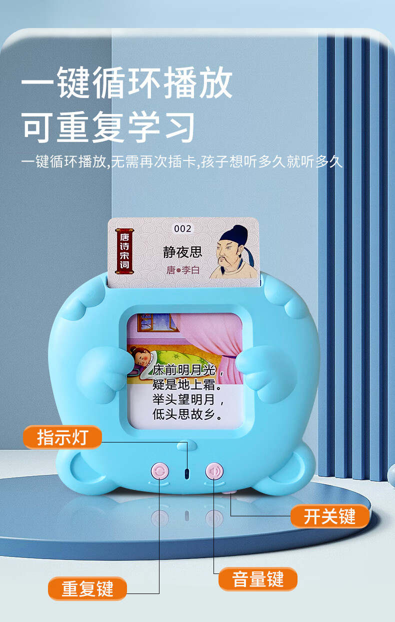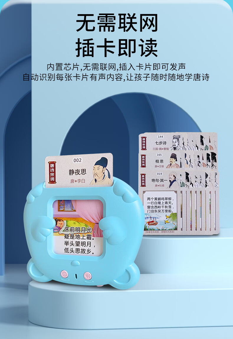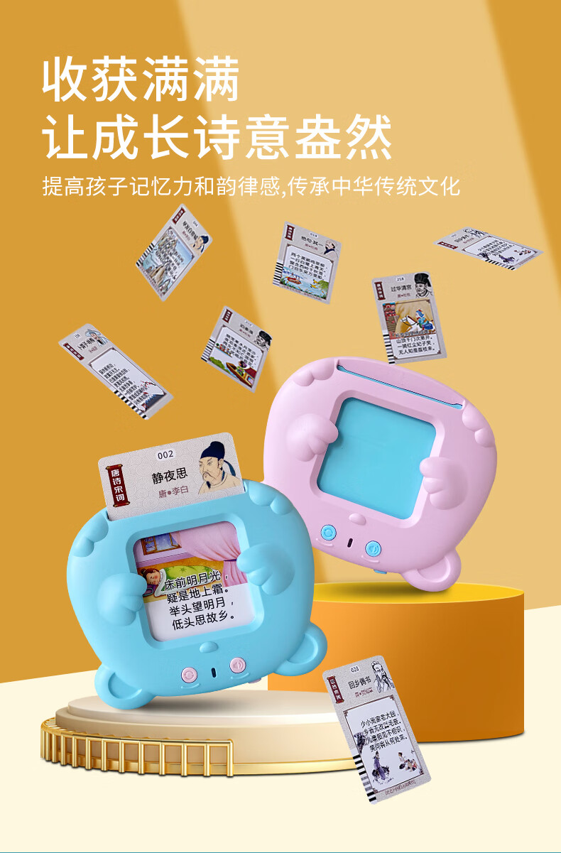 Zhidixing Machine d'éducation précoce à insertion de cartes pour enfants, poèmes anciens, poèmes Tang et machine d'apprentissage de 300 paroles de chansons, machine d'éducation précoce à insertion de cartes pour enfants, rose 336 poèmes Tang et poèmes de chanson + 510 lectures en chinois et en anglais