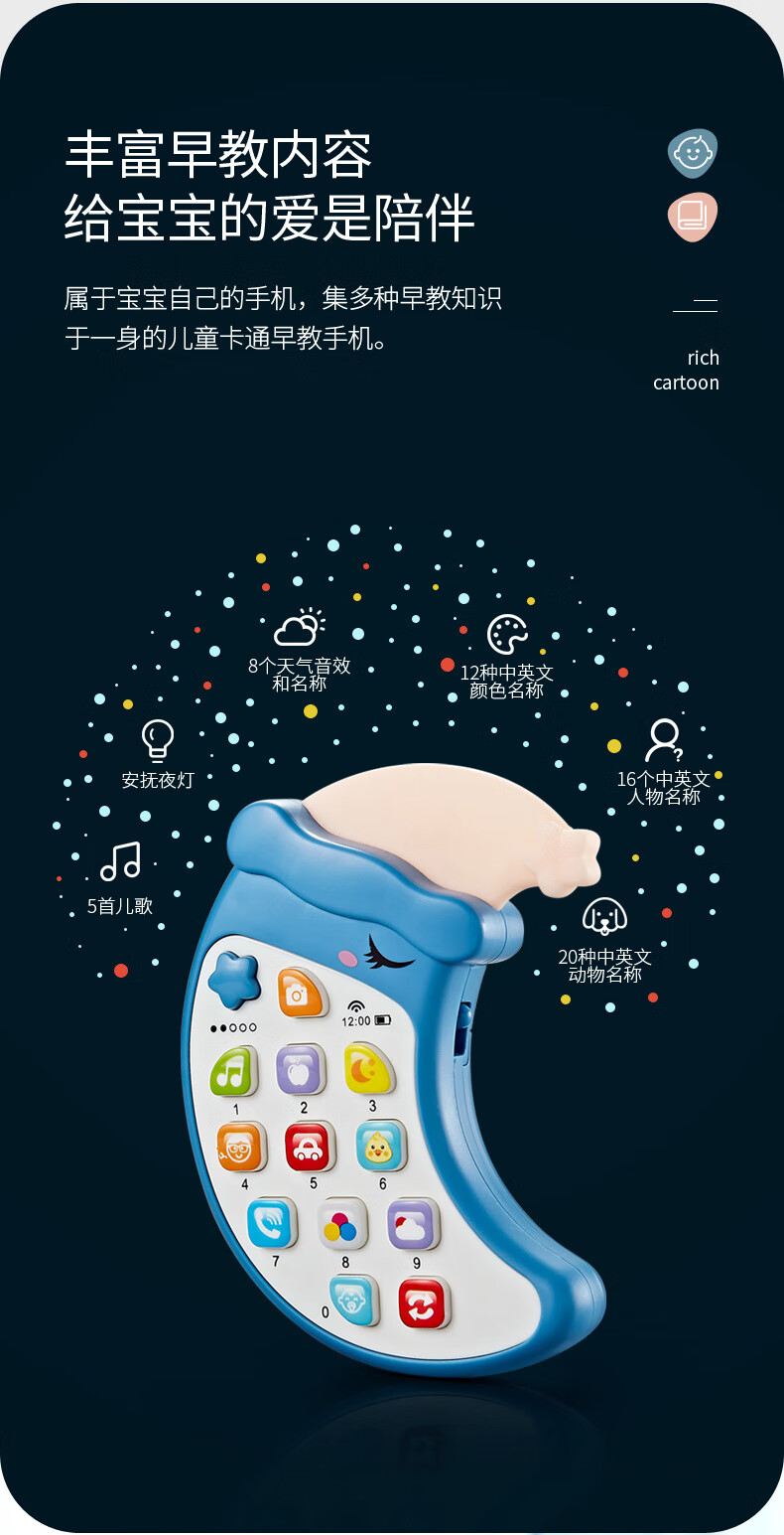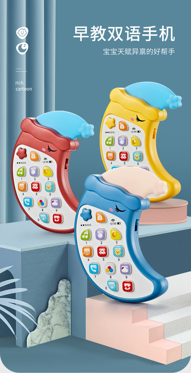 山头林村新款创意儿童早教故事机触摸仿真多功能月亮手机点读学习玩具 双语月亮手机(英文版)