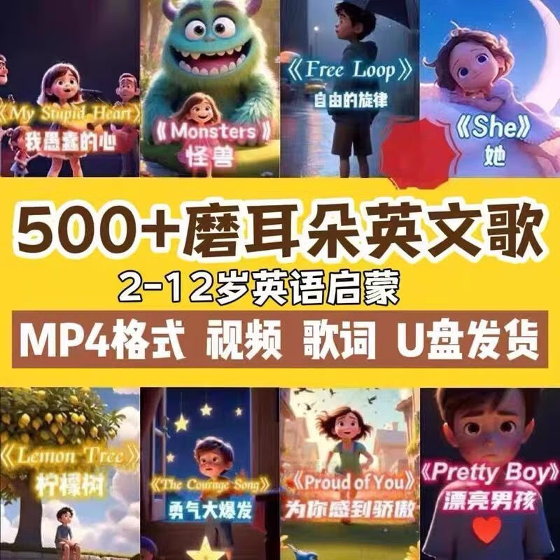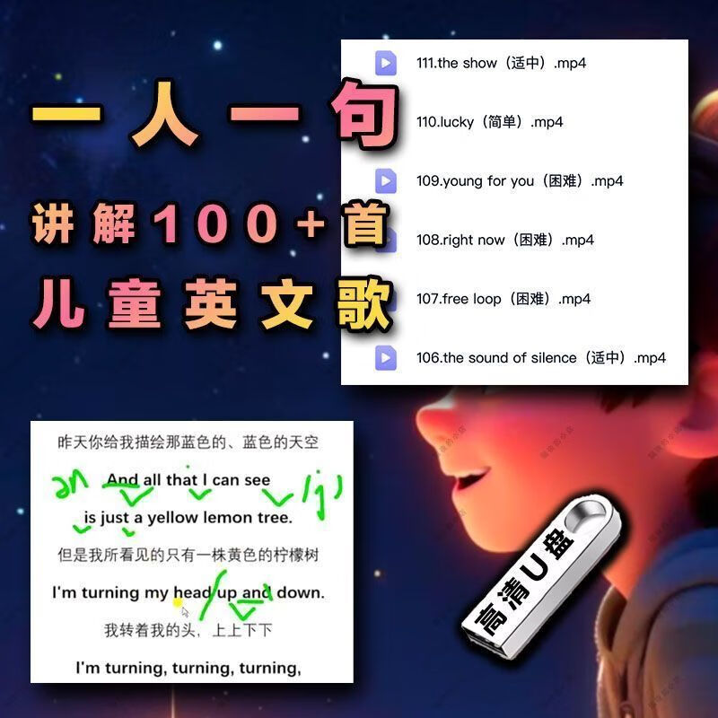 English ear-grinding children's English songs animation U disk children's enlightenment mobile phone music USB disk learning English artifact package two 100 English songs (video + audio + accompaniment + lyrics) 16G USB disk