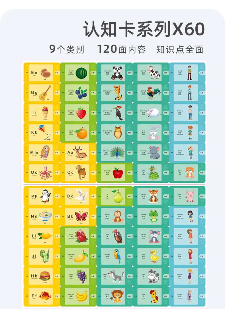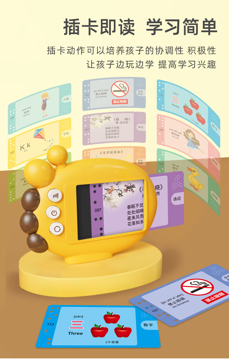 Yisheng Aides pédagogiques Machine d'éducation précoce bilingue chinois-anglais Lecteur de cartes de mots Cartes d'apprentissage pour cultiver les connaissances cognitives des enfants Version anglaise transfrontalière des enfants - Machine d'éducation précoce Xiaolu