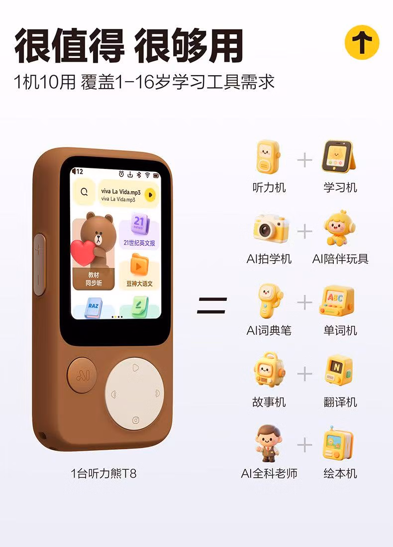 T8 English listening learning machine T4 listening treasure for elementary, middle and high school students T6 simultaneous English grading white 3 blue hearing bear T6S 128g