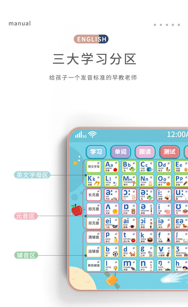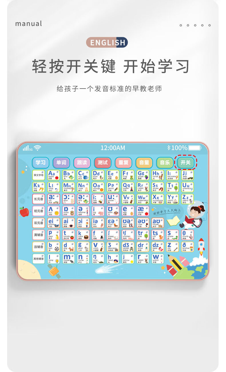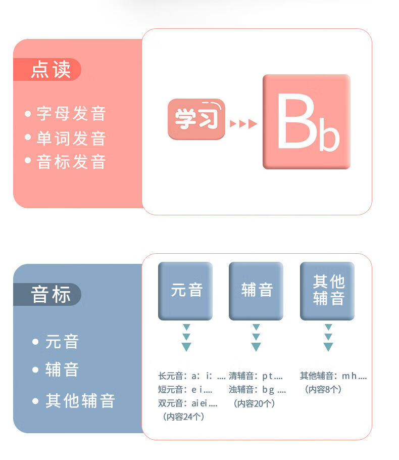 Shantou Lincun primary school students' English learning reading machine for first grade 26 English alphabets and 48 phonetic symbols early education machine English phonetic symbol learning machine pink version