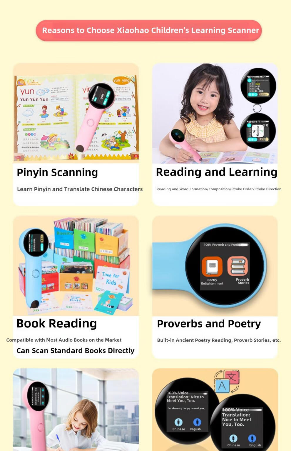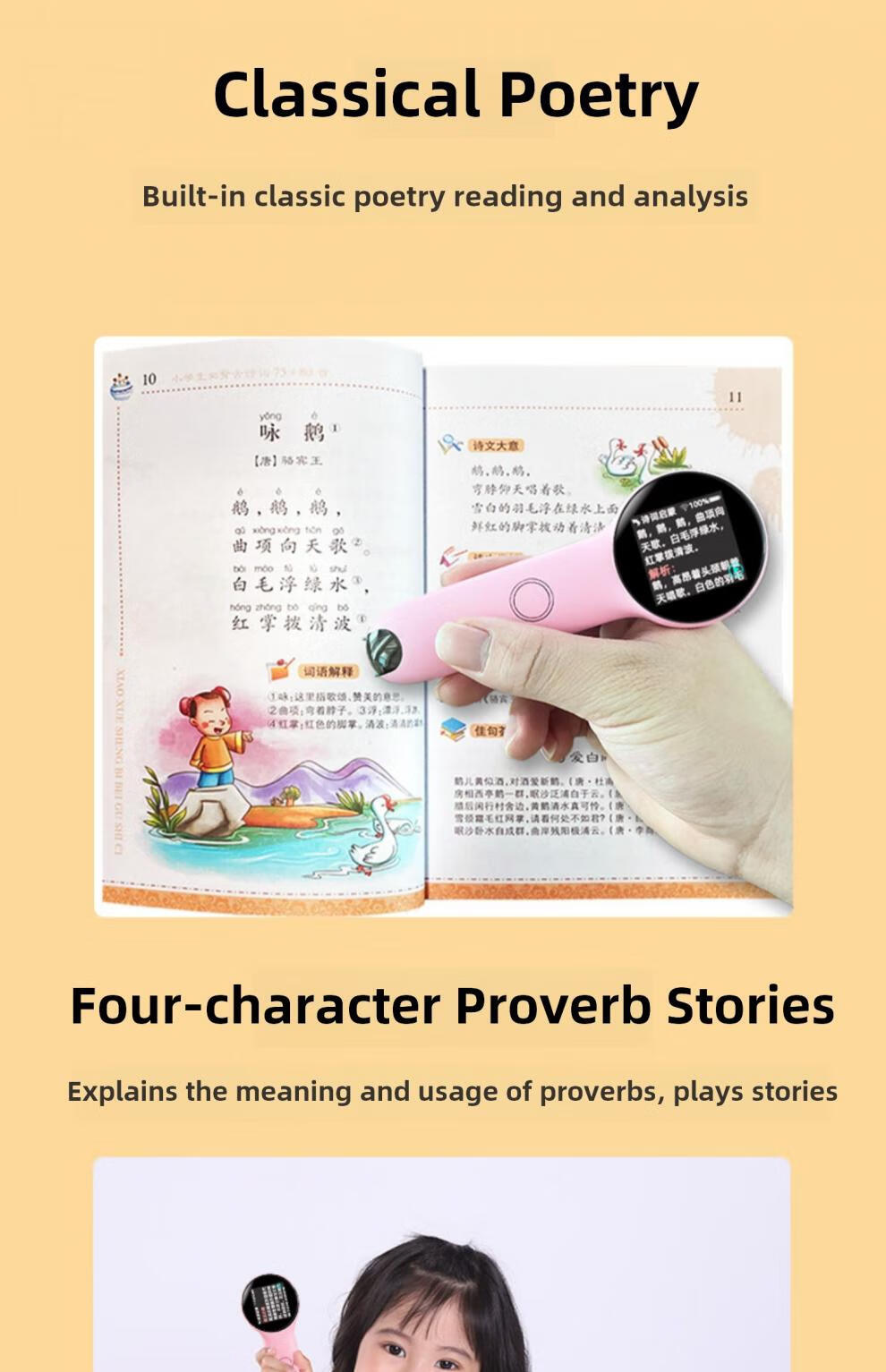 Hewu Xiaomao Stylo de lecture Pinyin Machine d'apprentissage de l'alphabétisation pour enfants Traduction chinoise et anglaise Neutre Nourrissons École primaire Première année Blanc Version B_Peut numériser tous les livres_Traduction Pinyin_Traduction vocale Norme officielle
