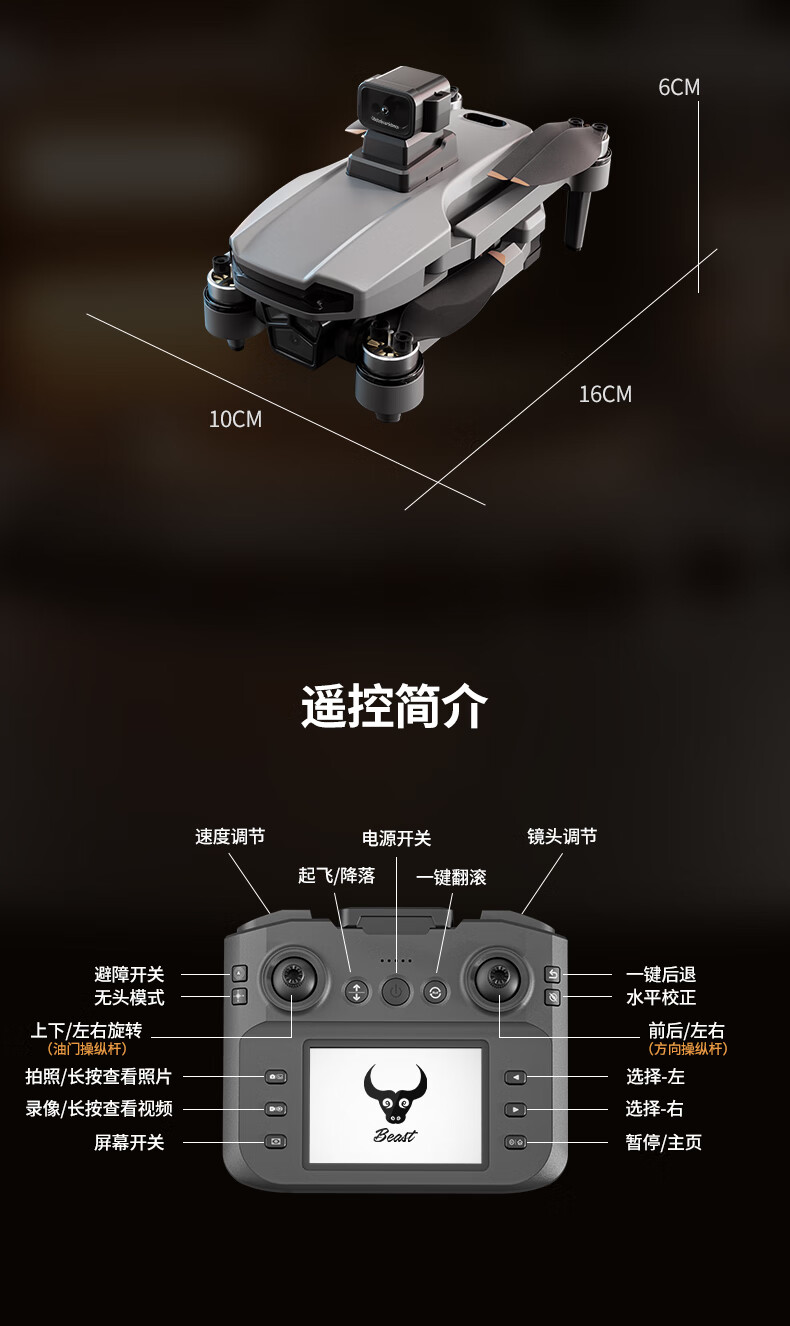 Beast Drone SG601 UAV HD Photographie aérienne avec écran Télécommande Petit niveau d'entrée Longue portée Évitement d'obstacles Moteur sans balais Télécommande Avion Jouet Quadricoptère pour enfants SG601-Télécommande avec écran Moteur sans balais Trois versions électriques Sac de rangement gratuit + Sac d'accessoires
