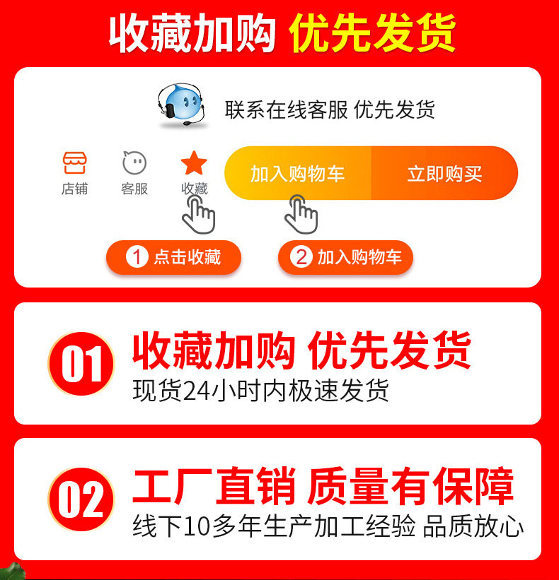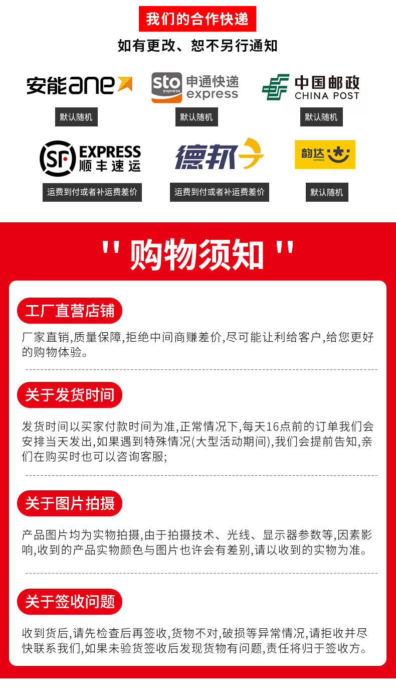 2)Les frais de port sont normalement facturés par tranche de 0,5KG. Donc, si vous achetez un produit qui ne pèse que 0,1KG, vous pourriez envisager d'acheter 2-3 PCS à la fois, ce qui n'ajoutera pas plus de frais de port à votre commande.