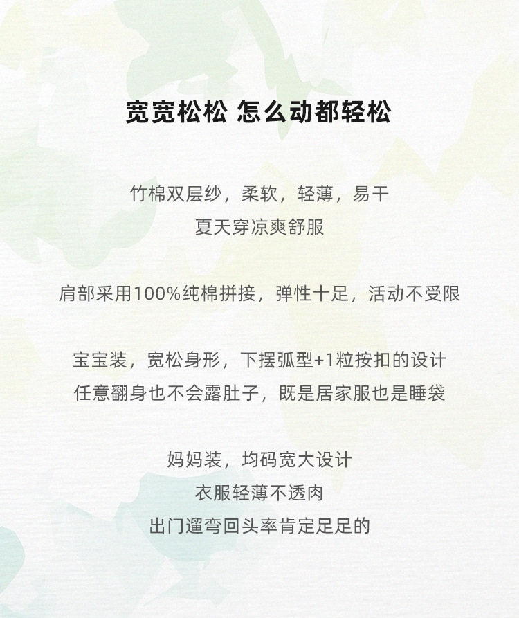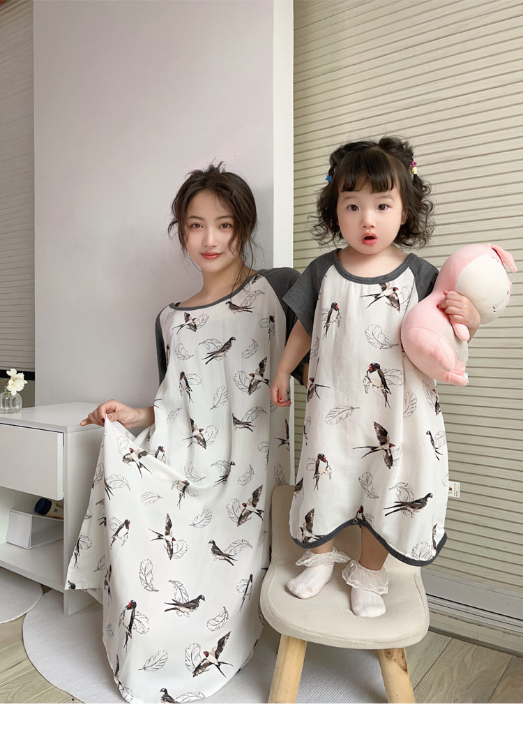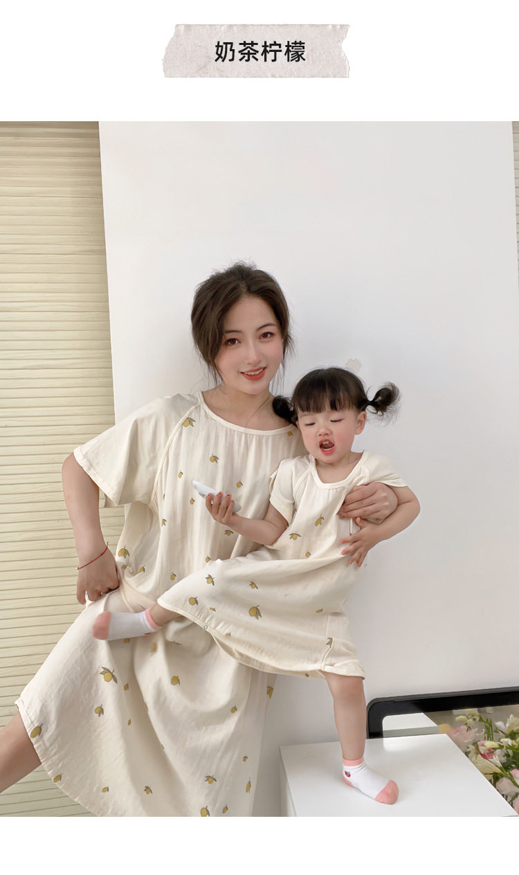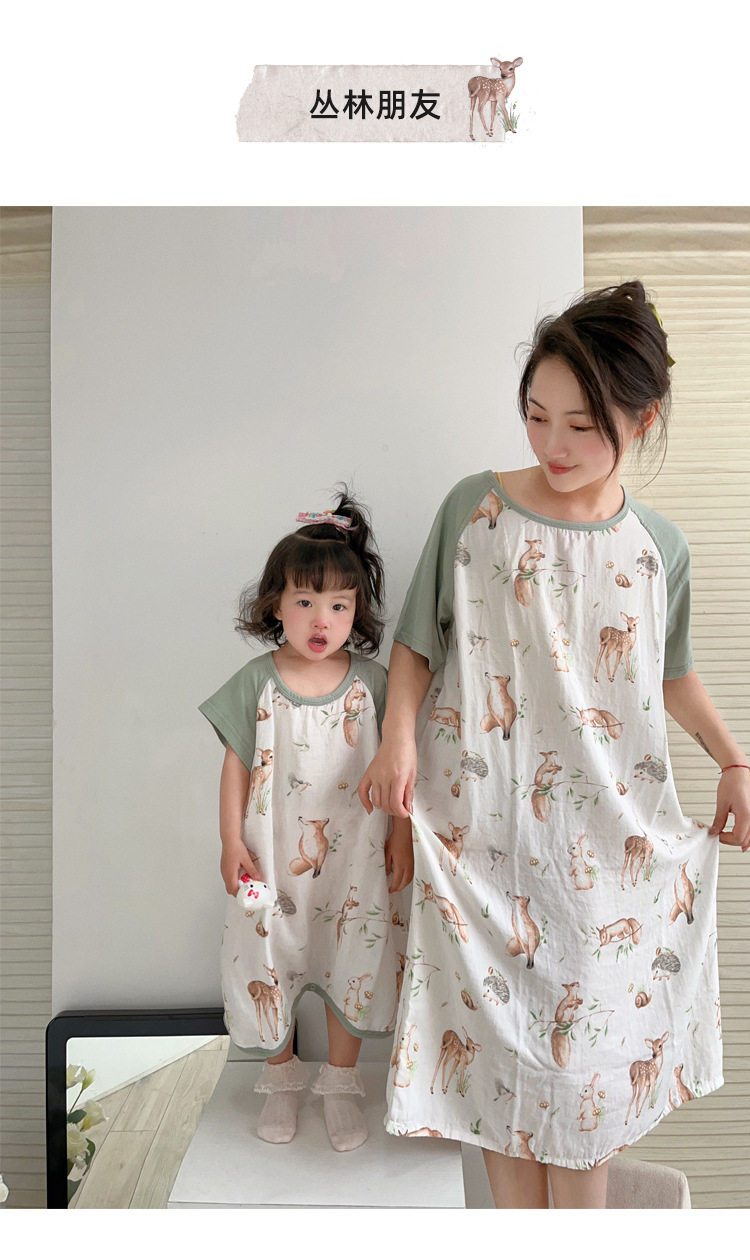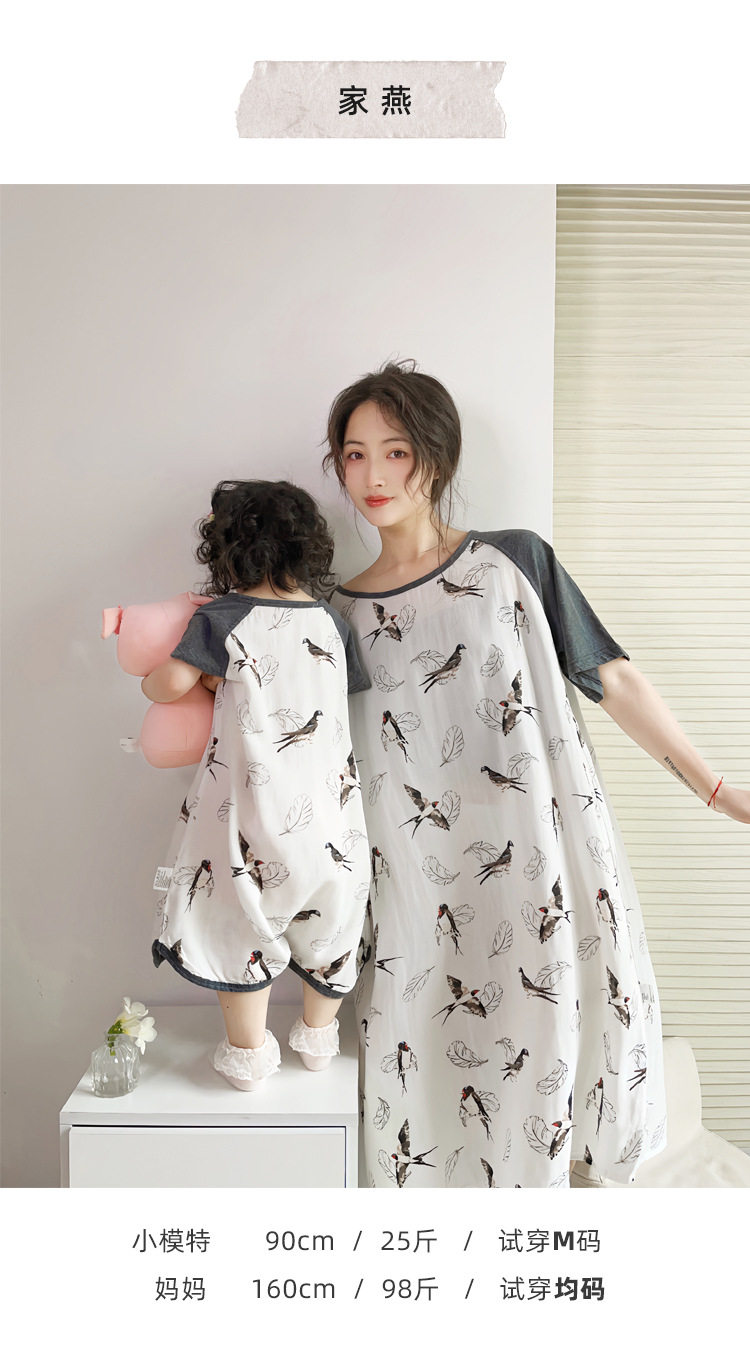 新品竹棉纱布短袖亲子装睡裙 宝宝居家服儿童睡衣 女童家居服夏季