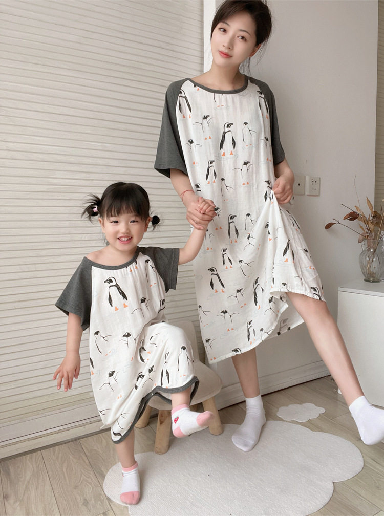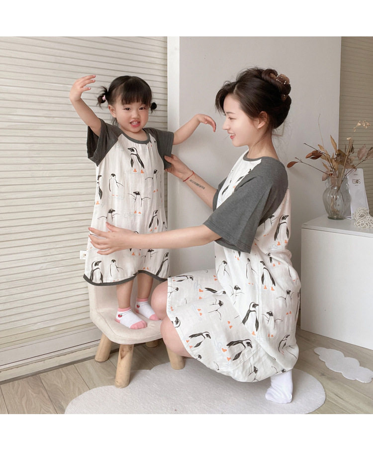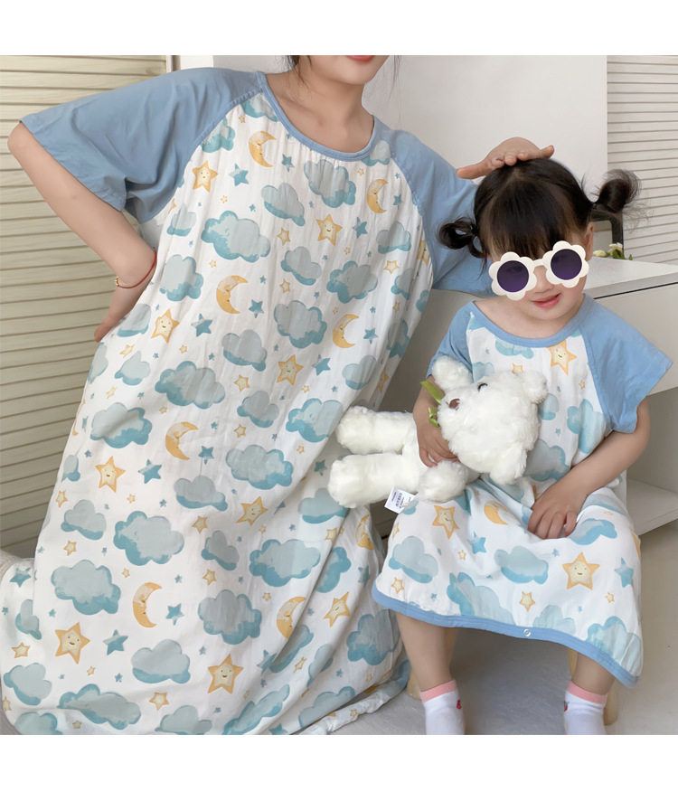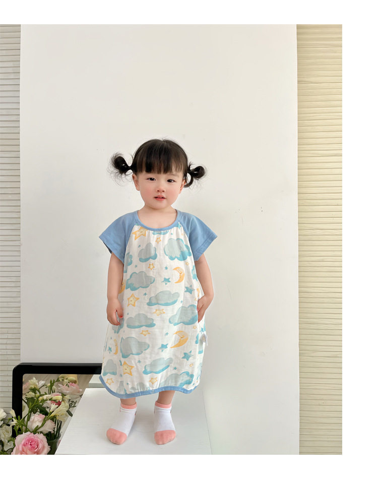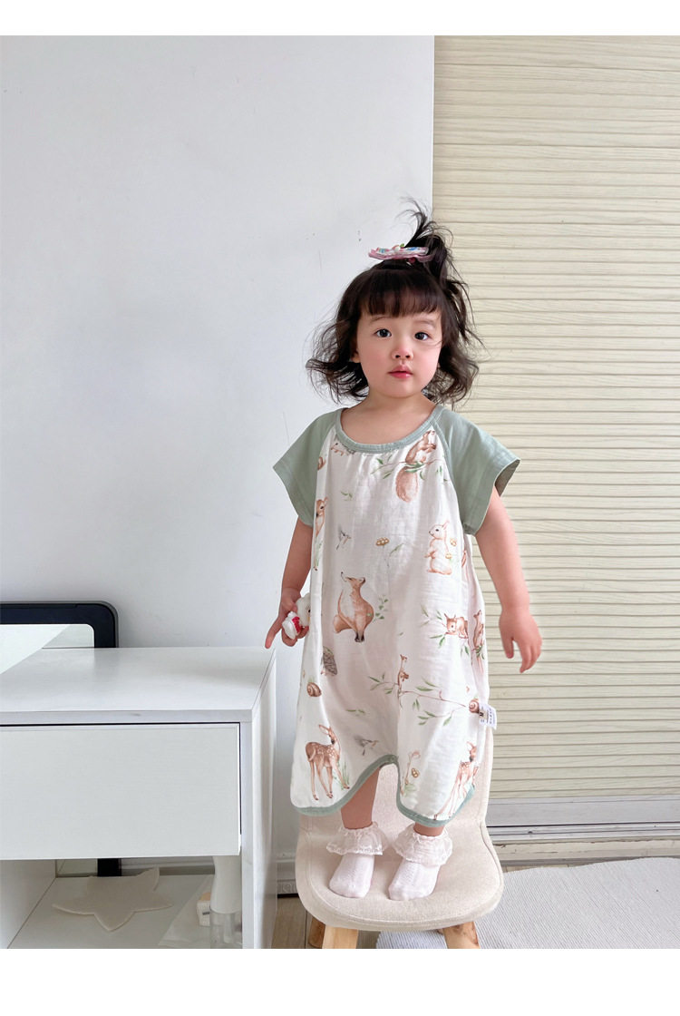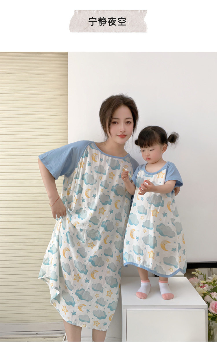 Color Jiayan-double-layer gauze short-sleeved nightgown,Penguin family-double-layer gauze short-sleeved nightgown,Jungle friends-double-layer gauze short-sleeved nightgown,Milk tea lemon-double-layer gauze short-sleeved nightgown,Tranquil night sky-double-layer gauze short-sleeved nightgown,Sunshine rainbow-double-layer gauze short-sleeved nightgown,Engineering vehicle-double-layer gauze short-sleeved nightgown