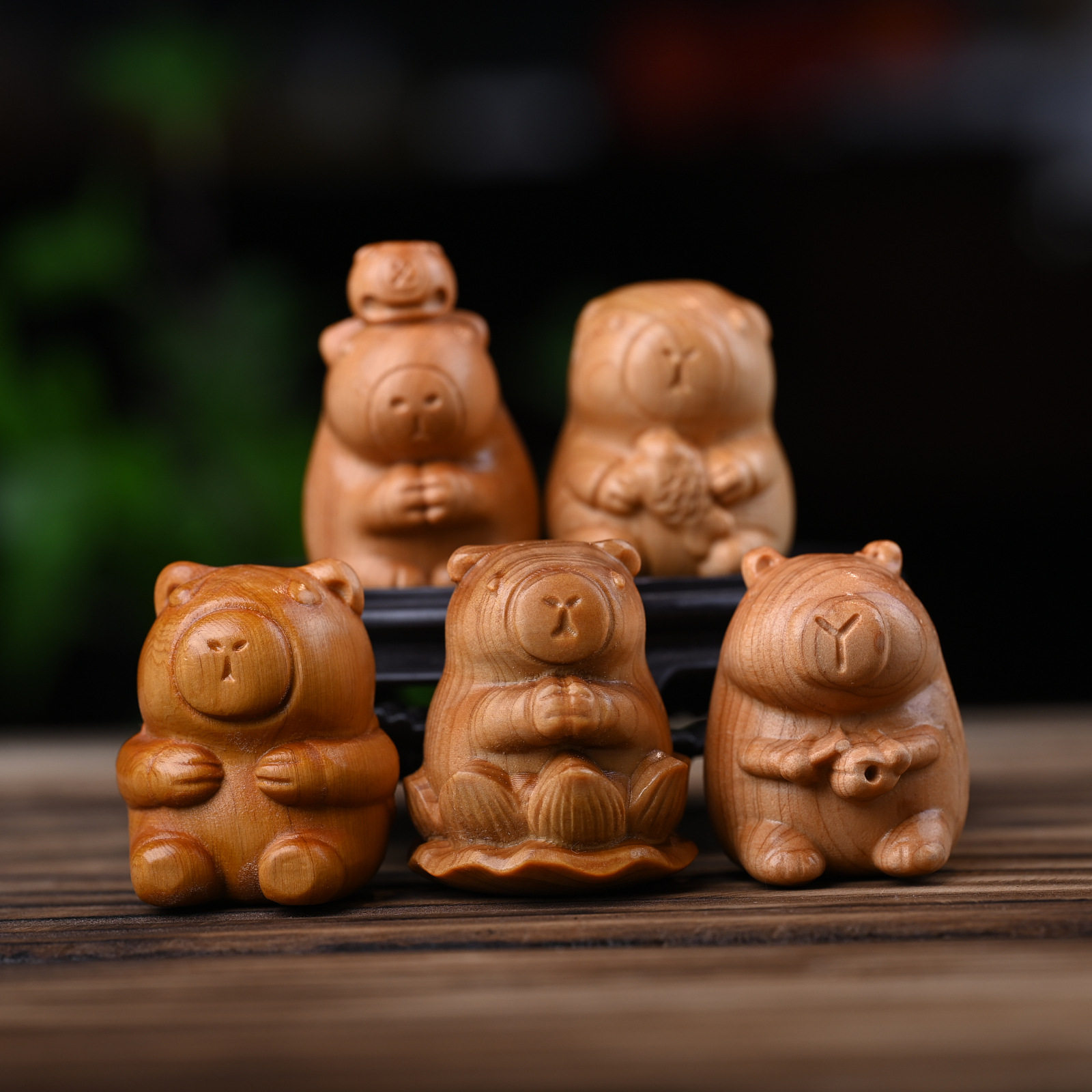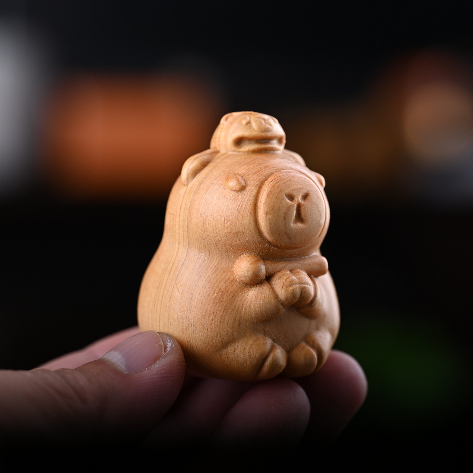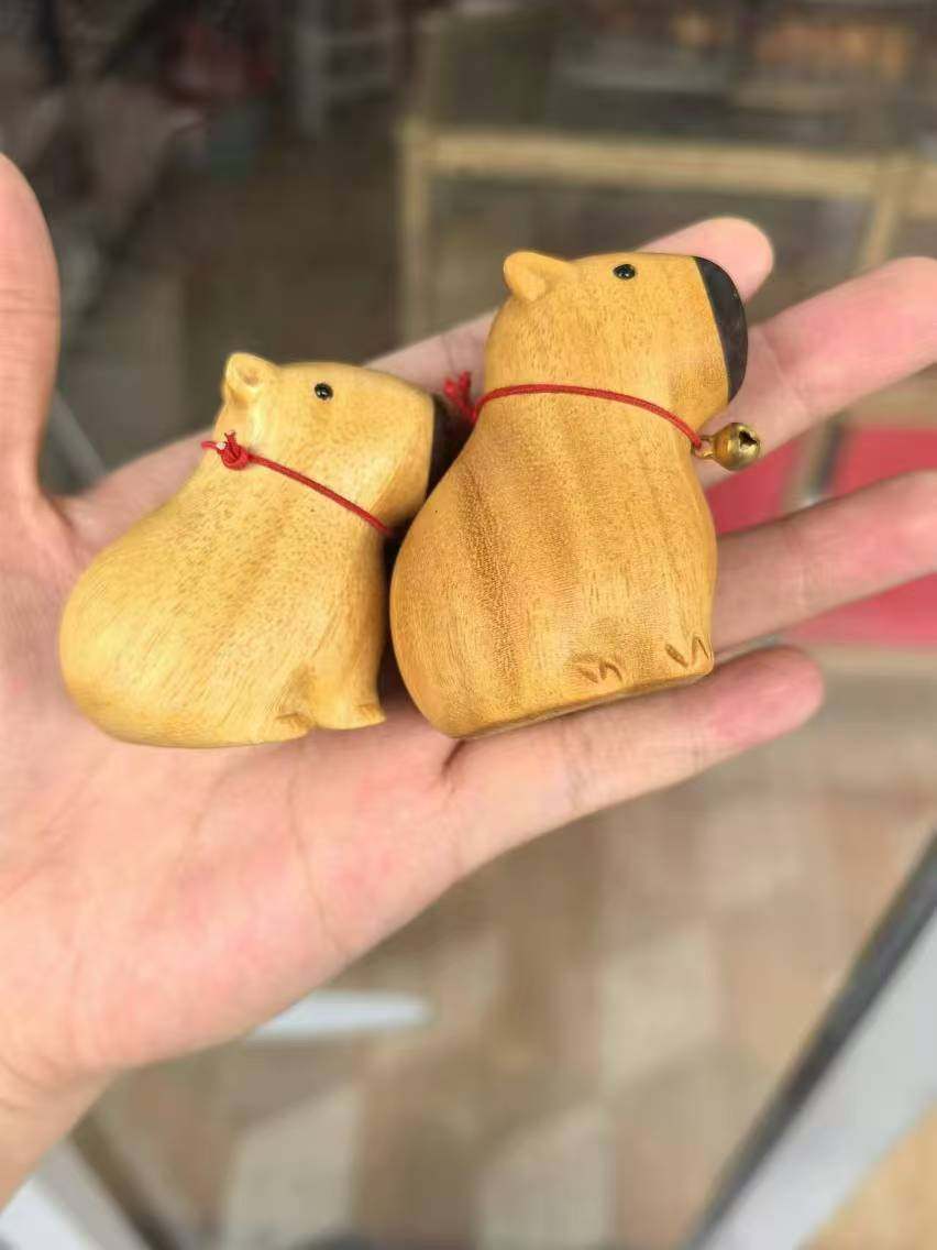 卡皮巴拉黄金檀随身文玩手把件解压治愈创意家居简约木质桌面摆饰