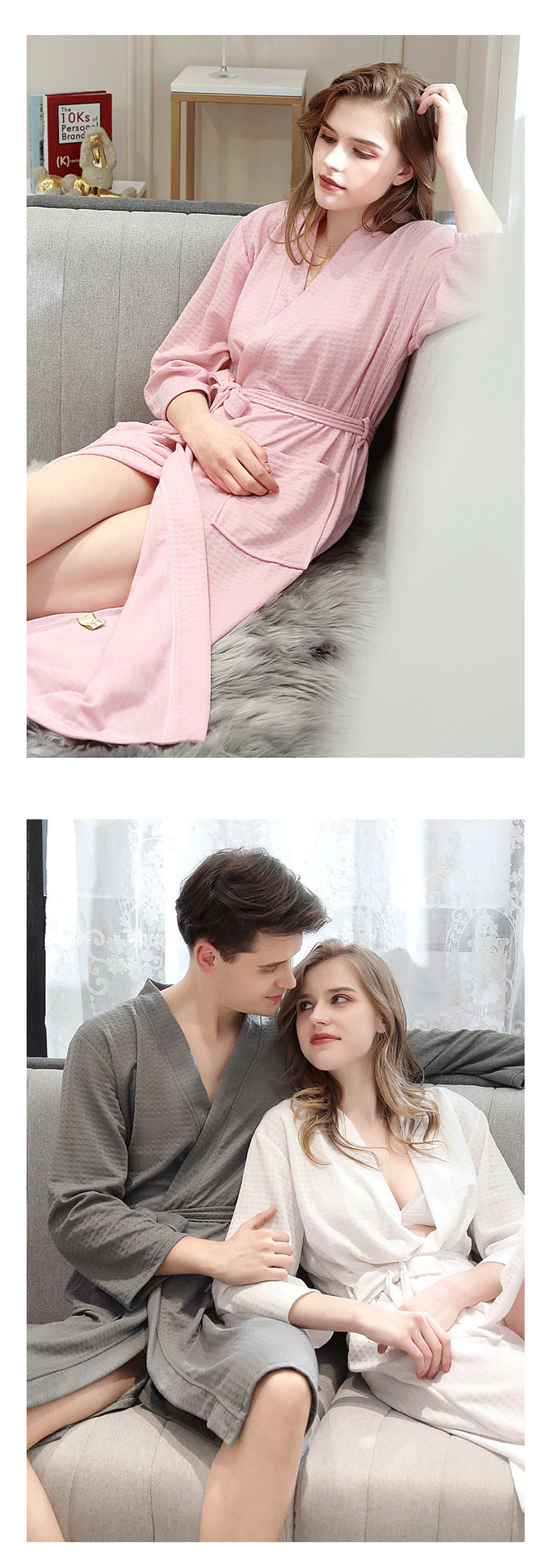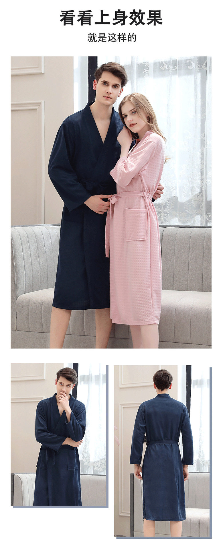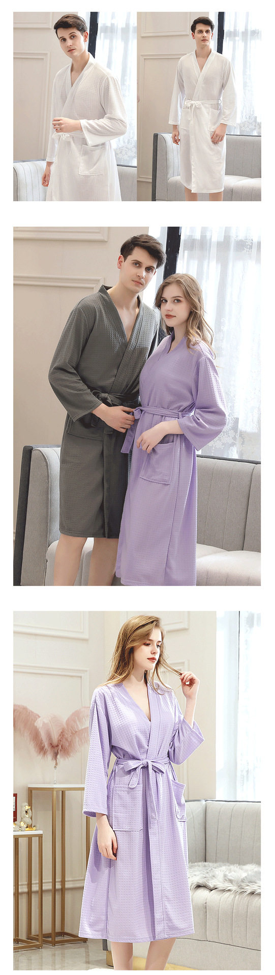 Spring and summer waffle bathrobe ladies sauna clothes thin sweat steaming dressing gown men's absorbent quick-drying bathrobe wholesale