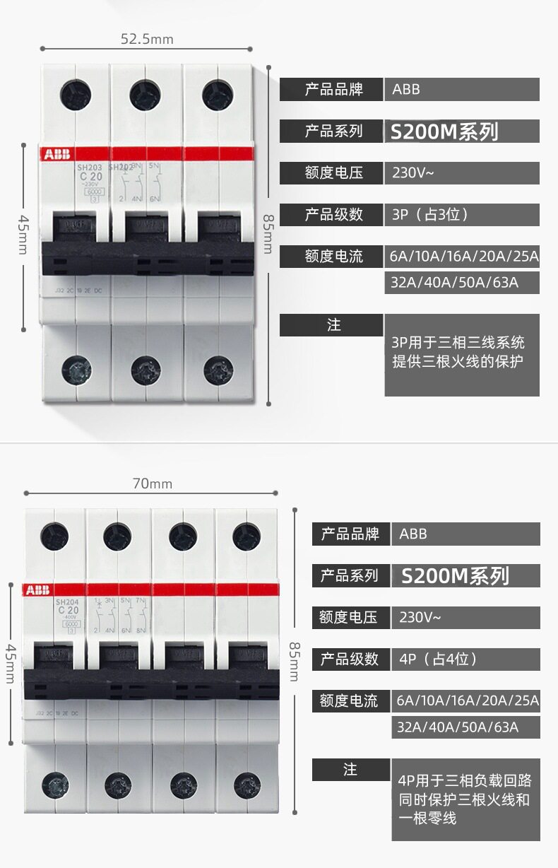 Abb Dc Circuit Breaker S202M-C0.5Dc S202M-C1Dc S202M-C2Dc S202M-C3Dc
