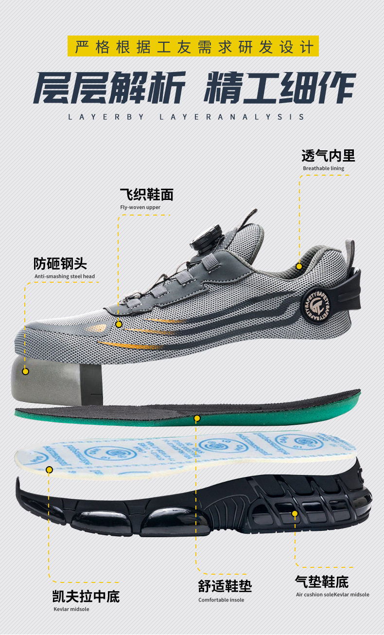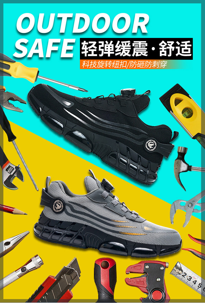 2025新款劳保鞋男防砸防刺穿橡塑鞋底内里防泼水安全靴智能纽扣