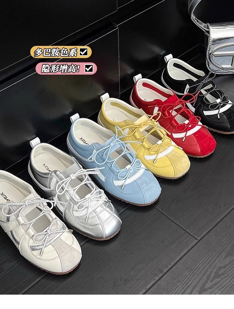 Inner Height 5cm Sweet Girl Genuine Leather De Training Shoes Women's 2025 New Korean Sports Ballet Style Mary Jane Single-layer Shoes for Women