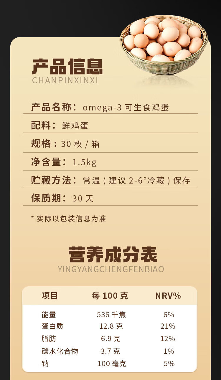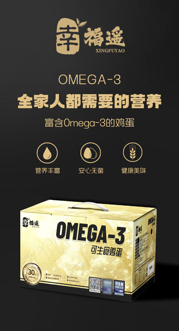 Xingfuyao OMEGA-3 standard fresh eggs that can be eaten raw, 30 pieces/box, cereal-fed breakfast ingredients, straight from the source