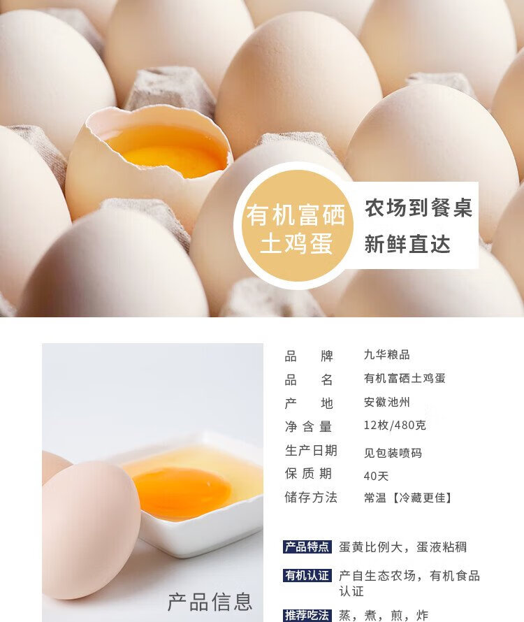 Organic selenium-enriched free-range eggs 12 pieces 480g