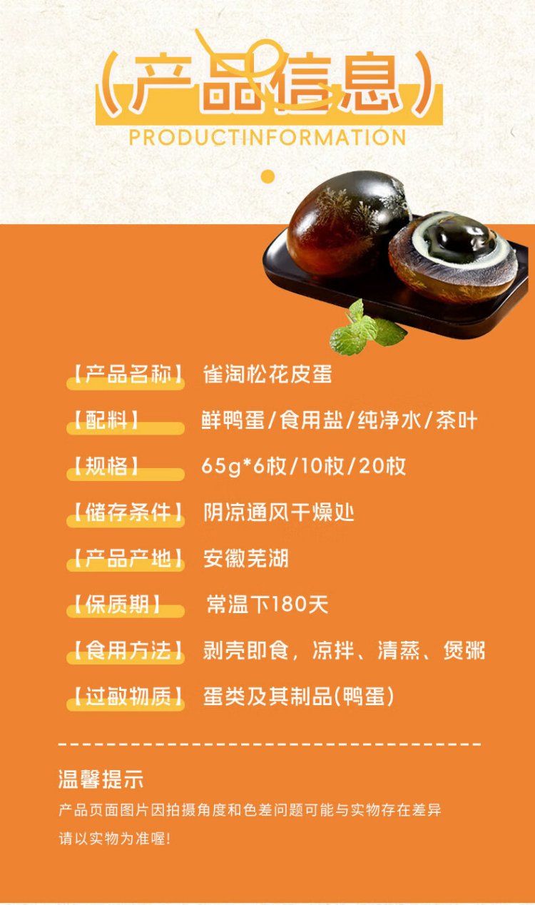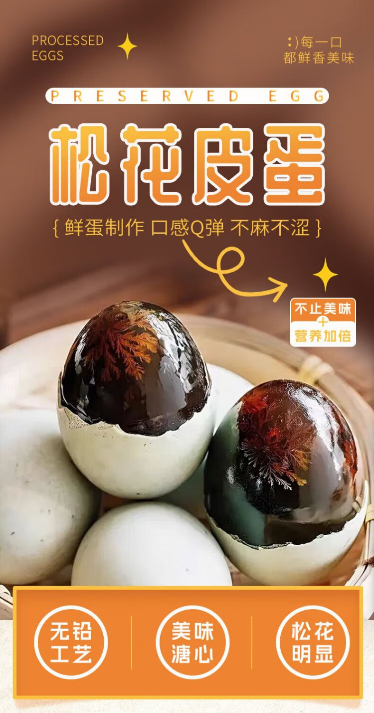 Songhua eggs, soft-boiled preserved eggs, runny duck eggs, preserved eggs, lead-free craft farmhouse eggs, 10 pieces (single piece is more than 60g)