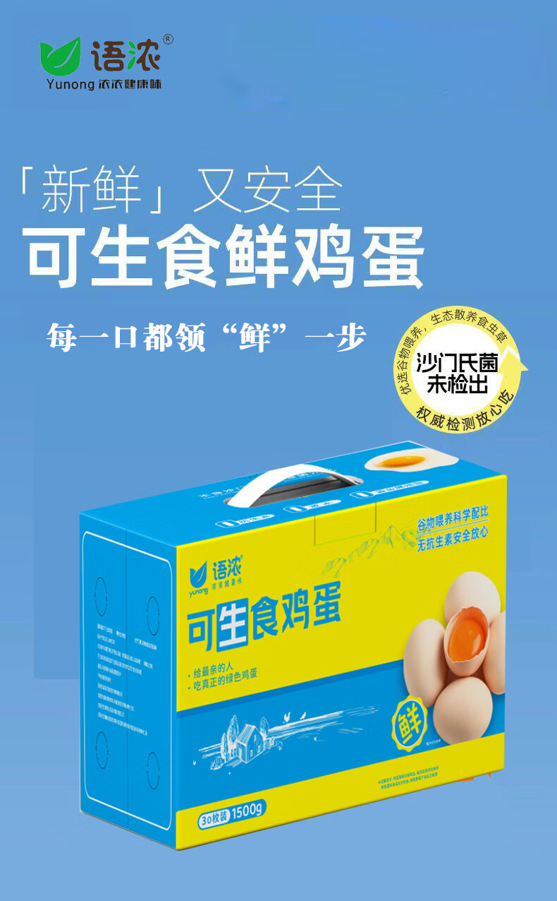 Yunong Antibiotic-Free Fresh Eggs for Raw Eating, Sterile Egg Selection Gift Box, Straight from the Source, 15 Eggs for Raw Eating