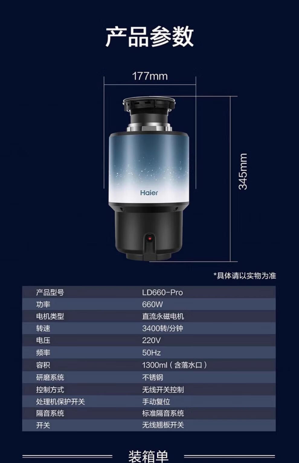 Haier kitchen food waste disposer home dining kitchen sink kitchen waste grinder grinder automatic water inlet intelligent exclusive LD780-Z1 automatic water inlet 780