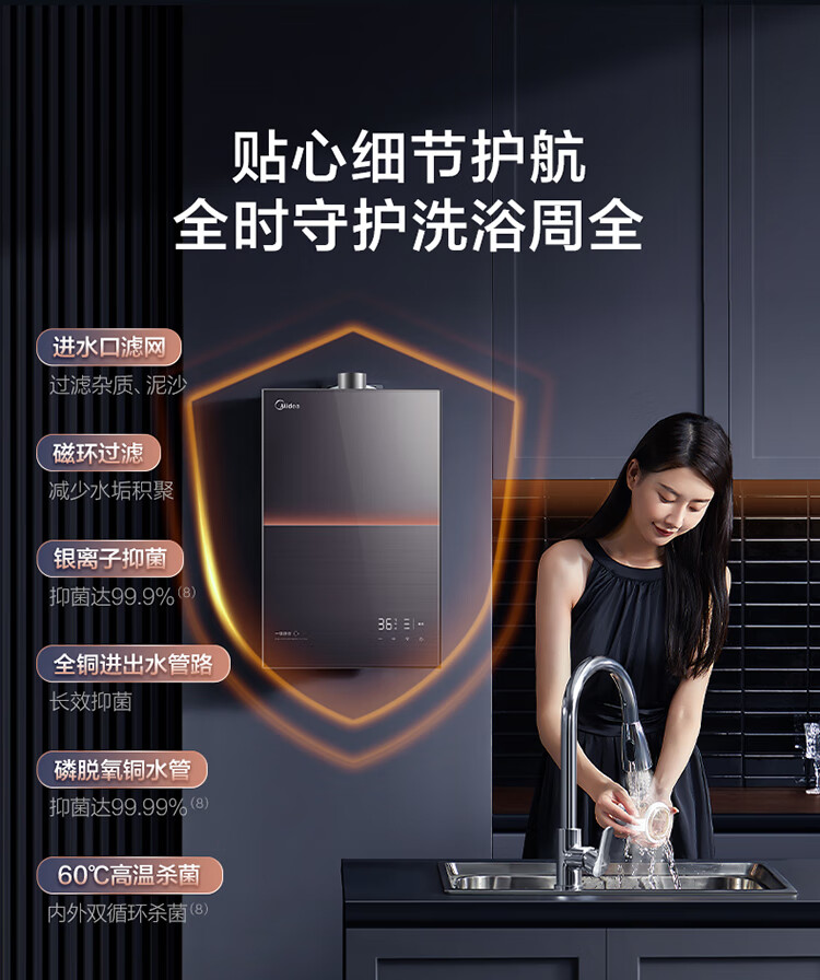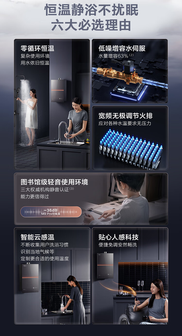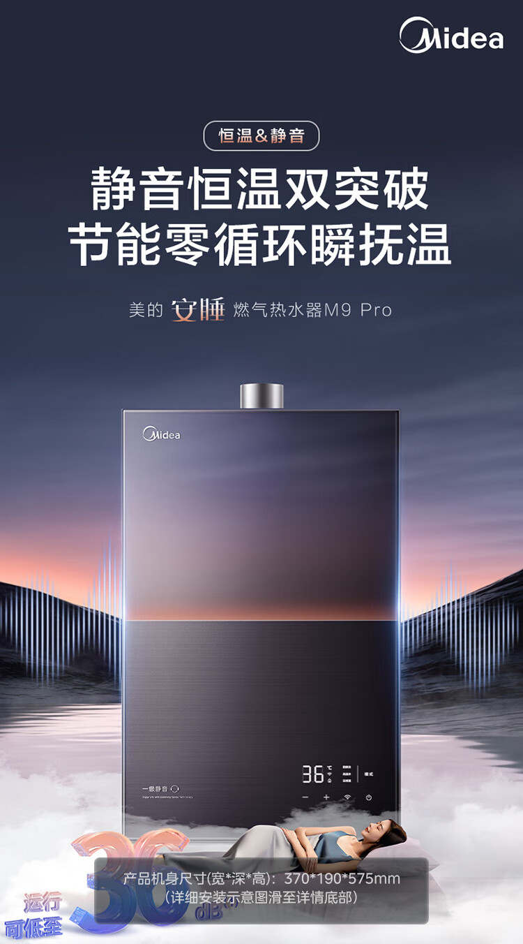 Midea M9 Pro 16-liter natural gas water heater, first-level silent, zero-cycle constant temperature for home use, 15% national subsidy
