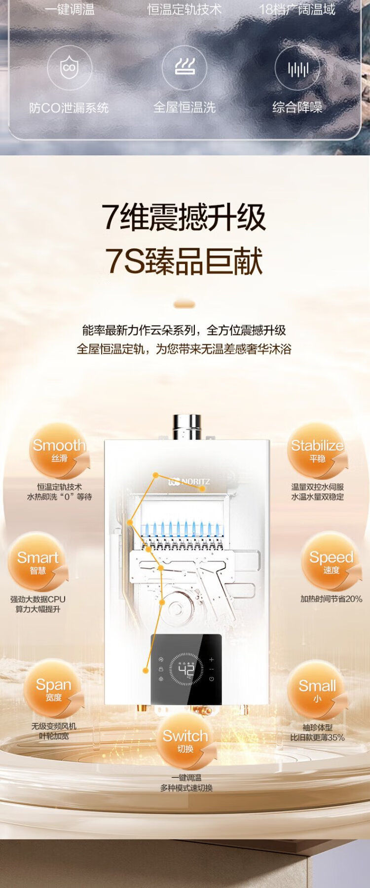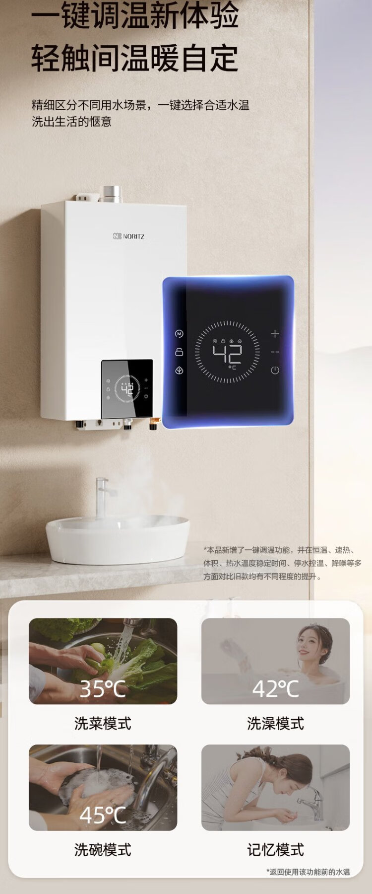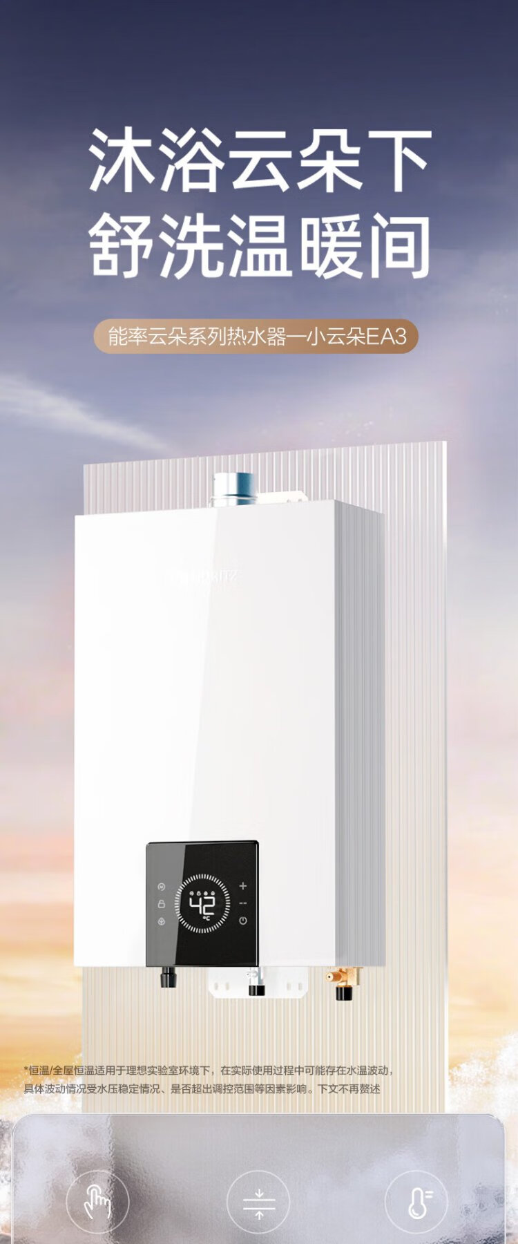 NORITZ Xiaoyunduo EA3A 13-liter gas water heater, natural gas, 15% national subsidy for home appliances, constant temperature smart core, temperature and volume dual control water servo 13EA3AFEX