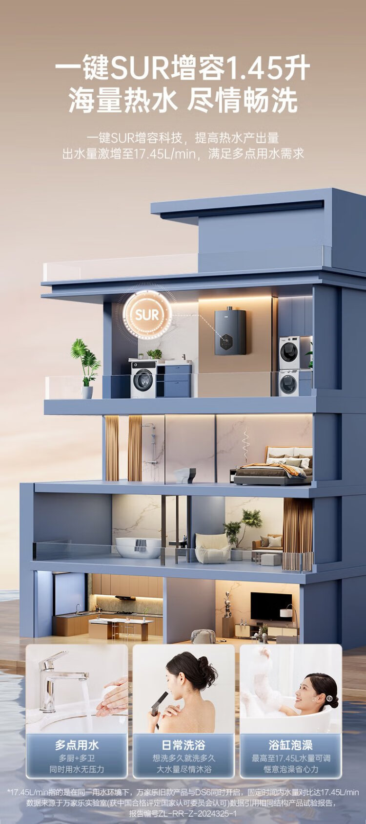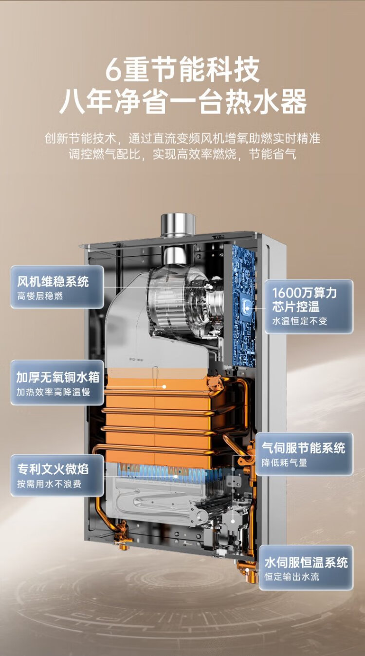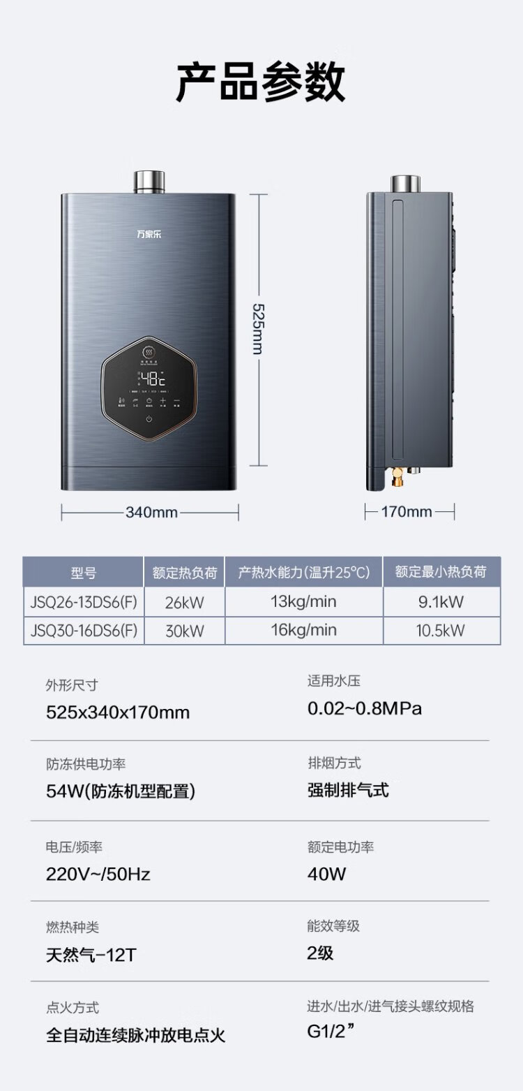 Macro Sleep Wash DS6(F), increased capacity and large water capacity, 16-liter gas water heater, state subsidy, 15% water servo, natural gas, first-level constant temperature, energy saving, anti-freeze, trade-in