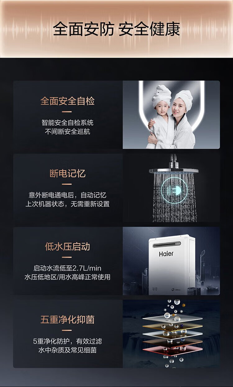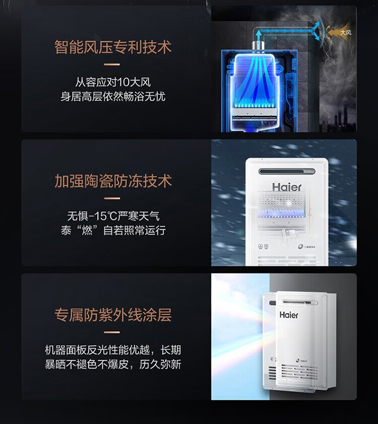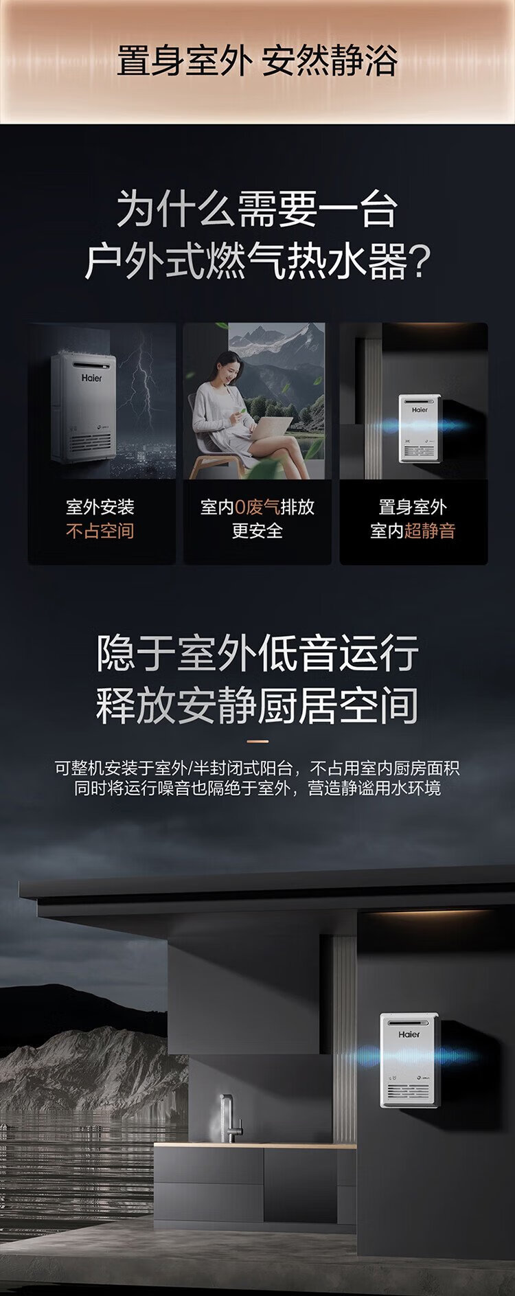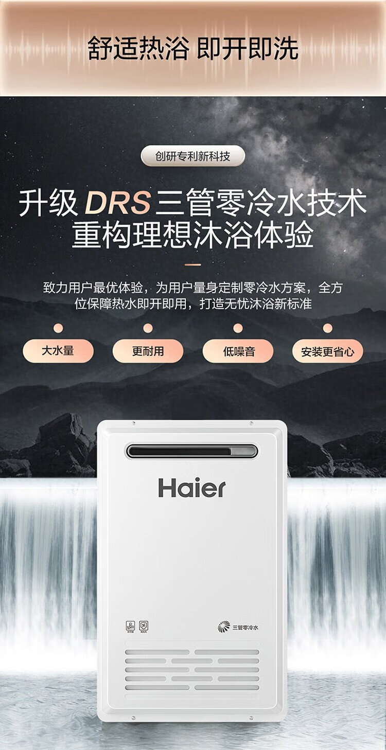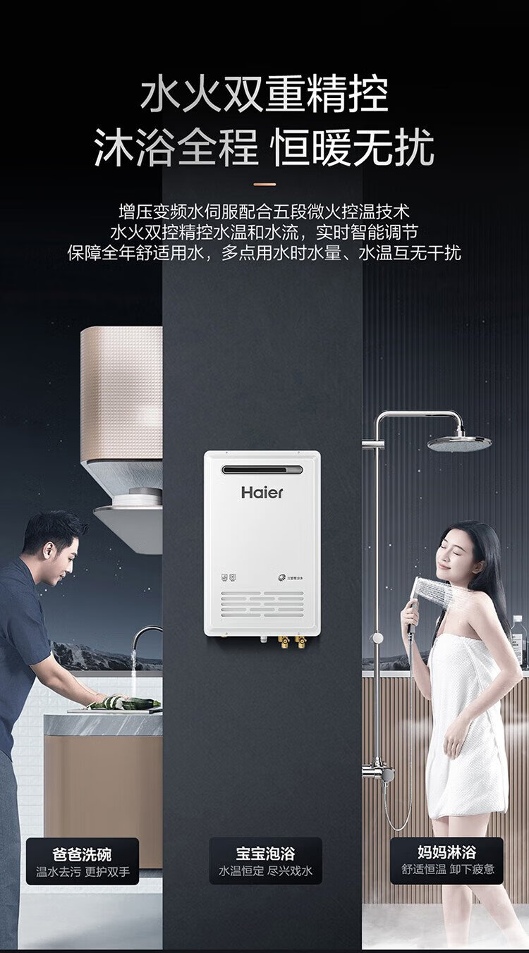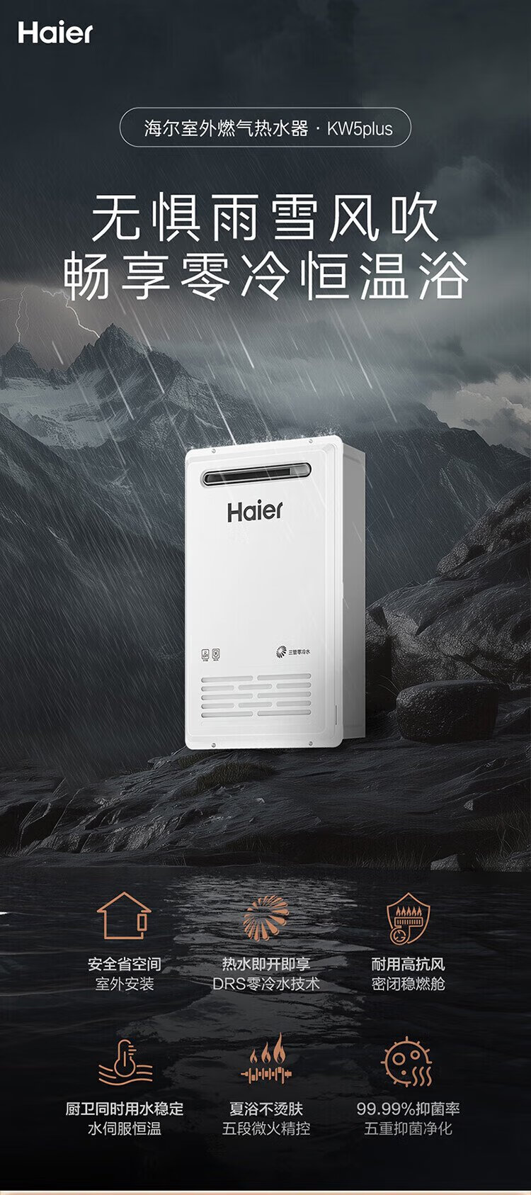Haier outdoor unit KW5Plus zero cold water 16-liter gas water heater for home use water servo constant temperature and mute 15% national subsidy windproof, rainproof and sunproof safety