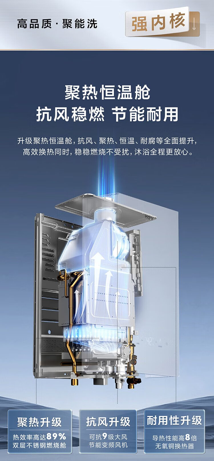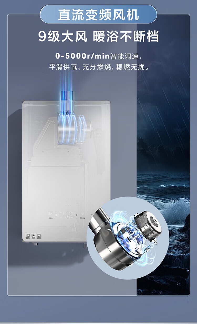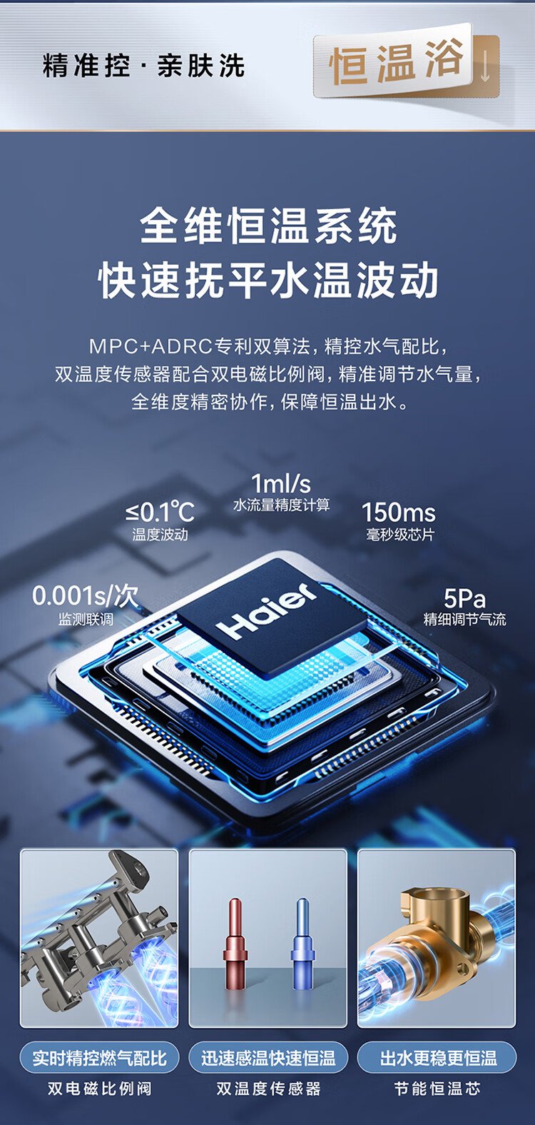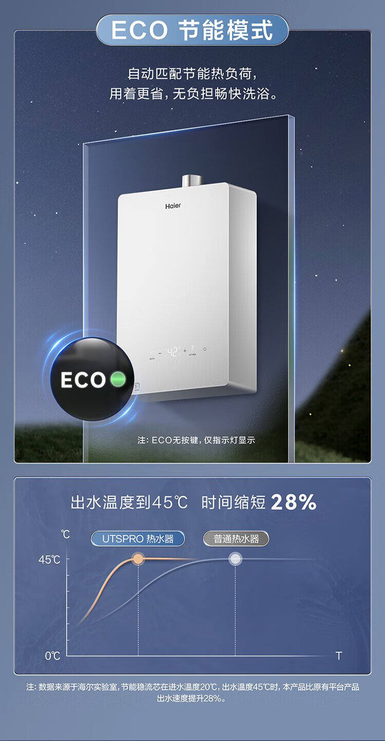 Haier YD5 13-liter liquefied gas water heater for home use, ECO energy saving, low water pressure start, fast heating and silent, 15% national subsidy, trade-in, wind resistance and anti-freeze