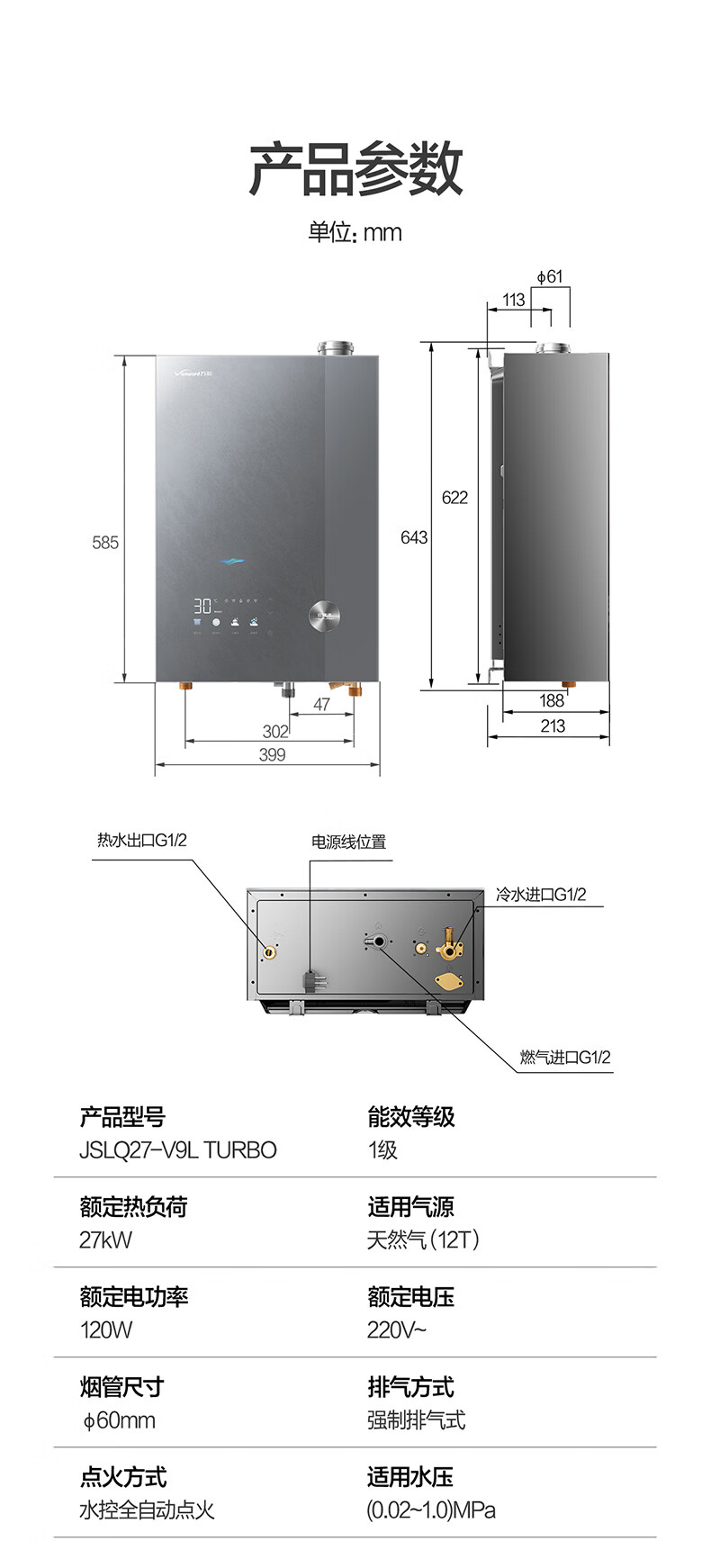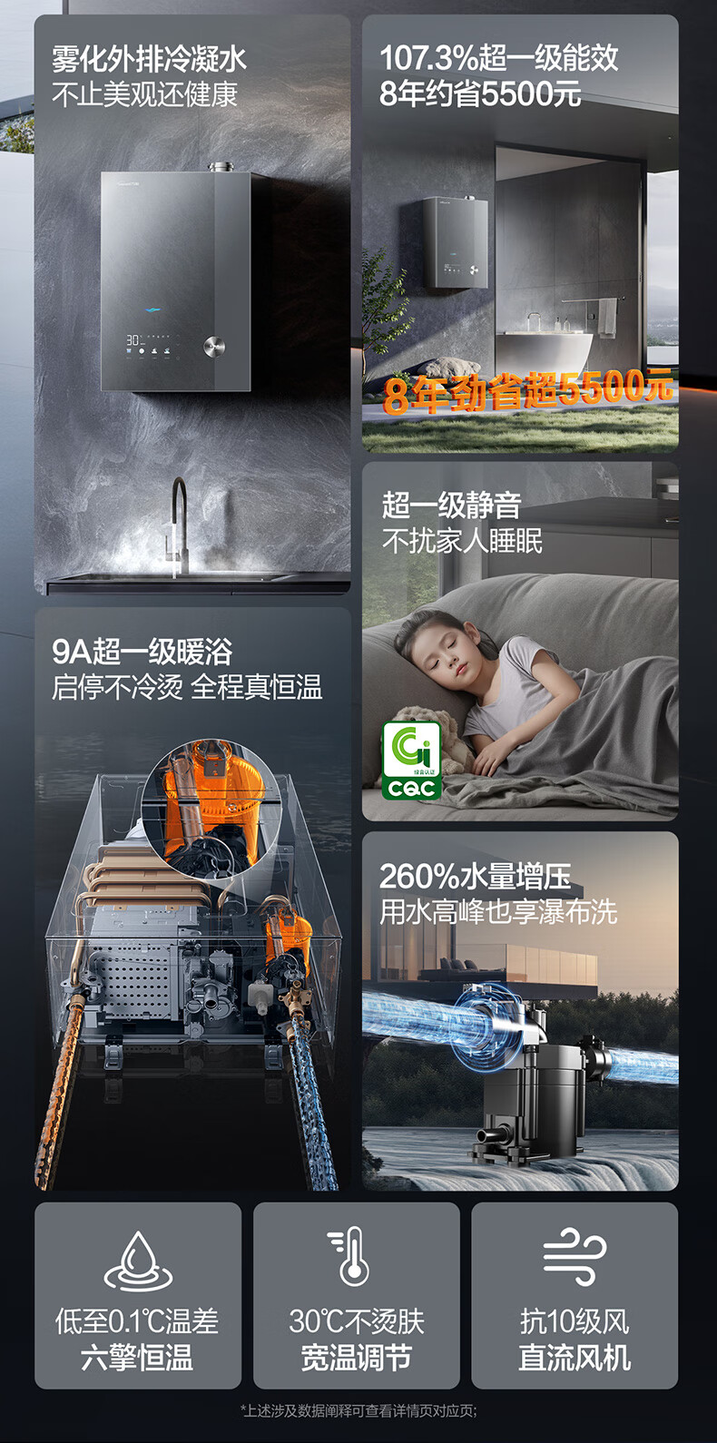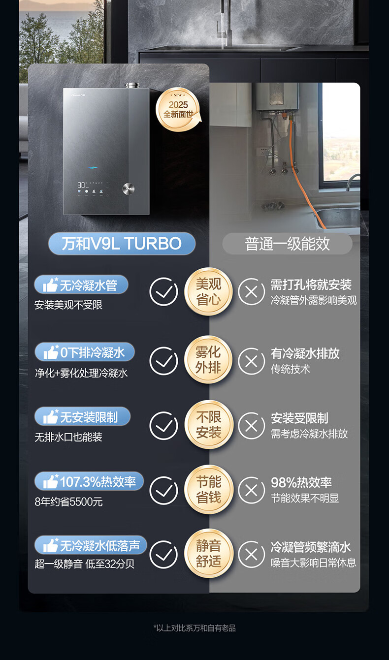 Vanward V9L TURBO without condensation pipe, 16-liter gas water heater, natural gas first-class energy efficiency, constant temperature, first-class warm bath, pressurized and silent, 20% national subsidy