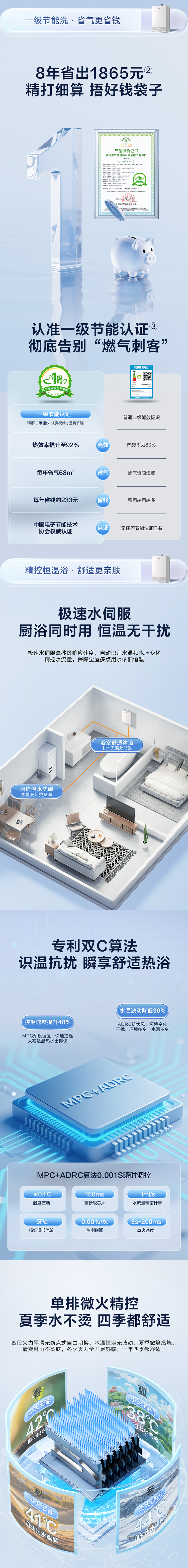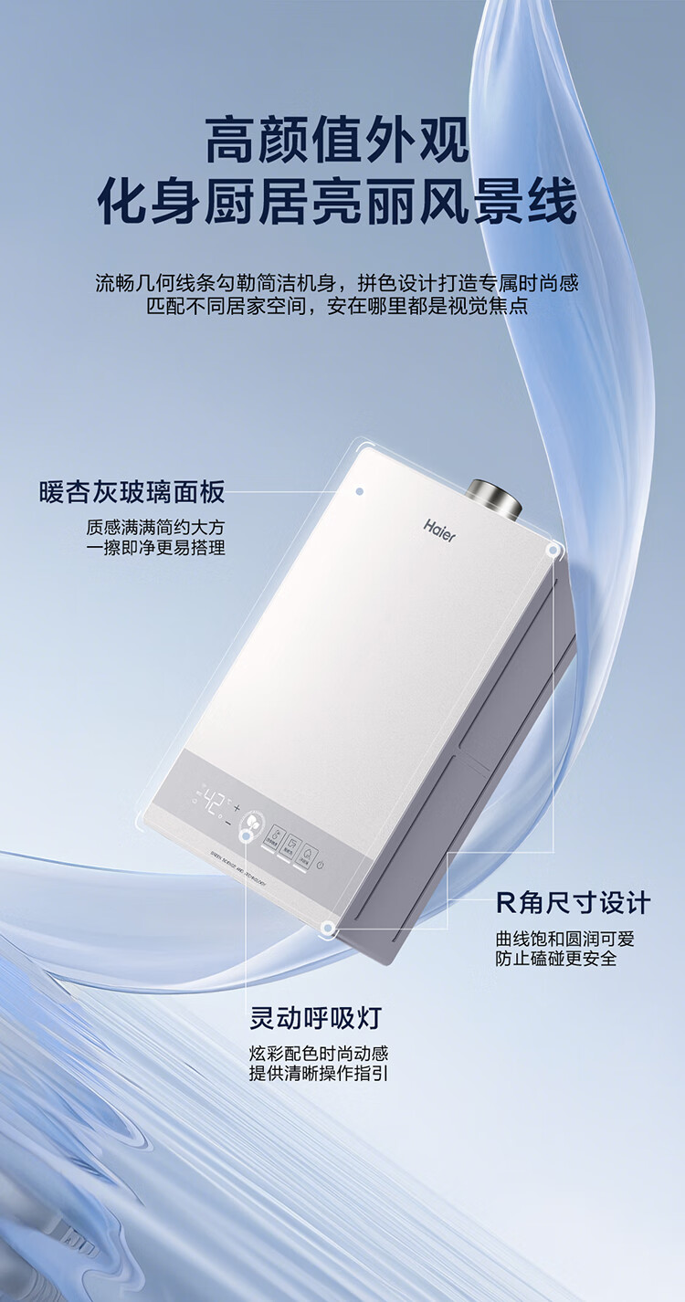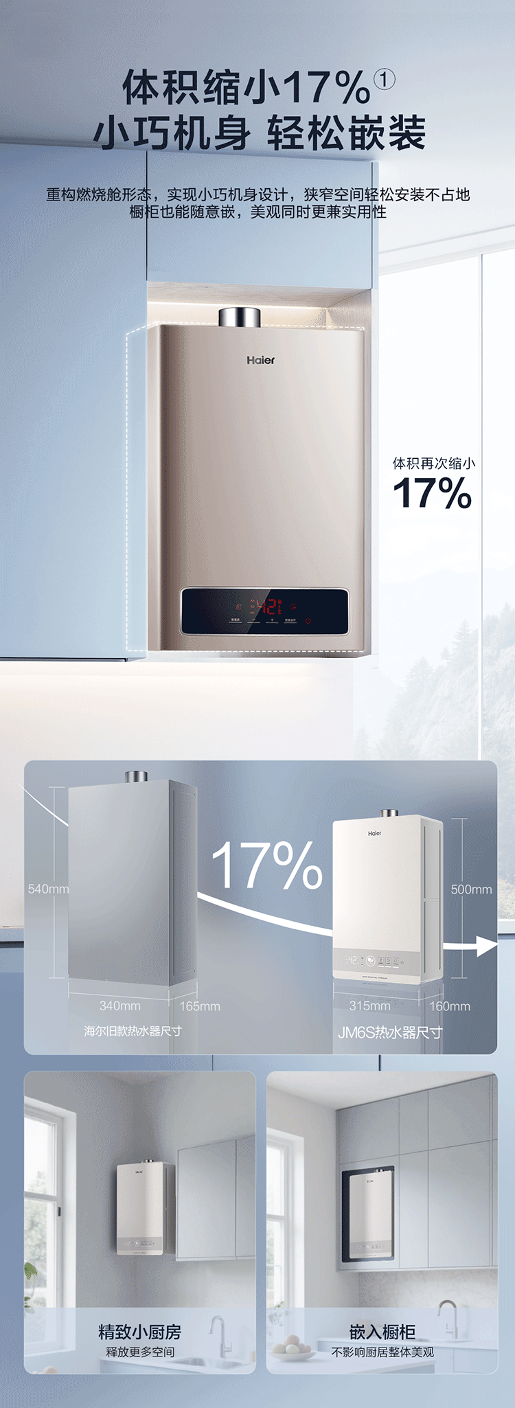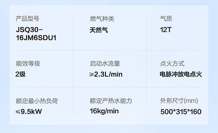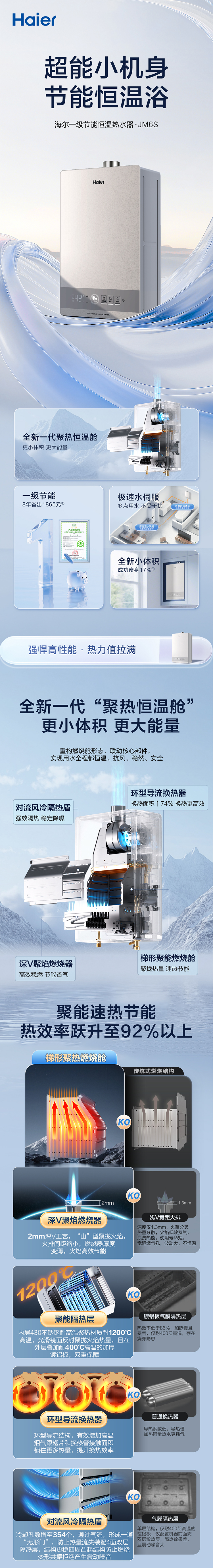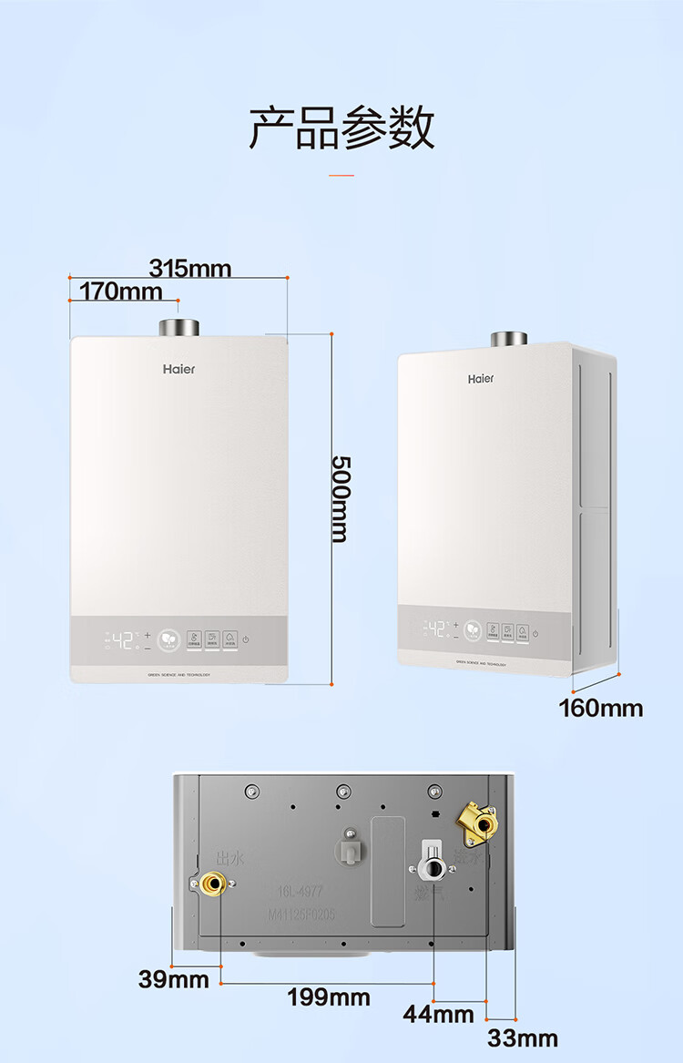 Haier Starlight JM6S 16-liter natural gas water heater for home use, good appearance and small size, first-level energy saving and gas saving, fast water servo constant temperature, silent low water start