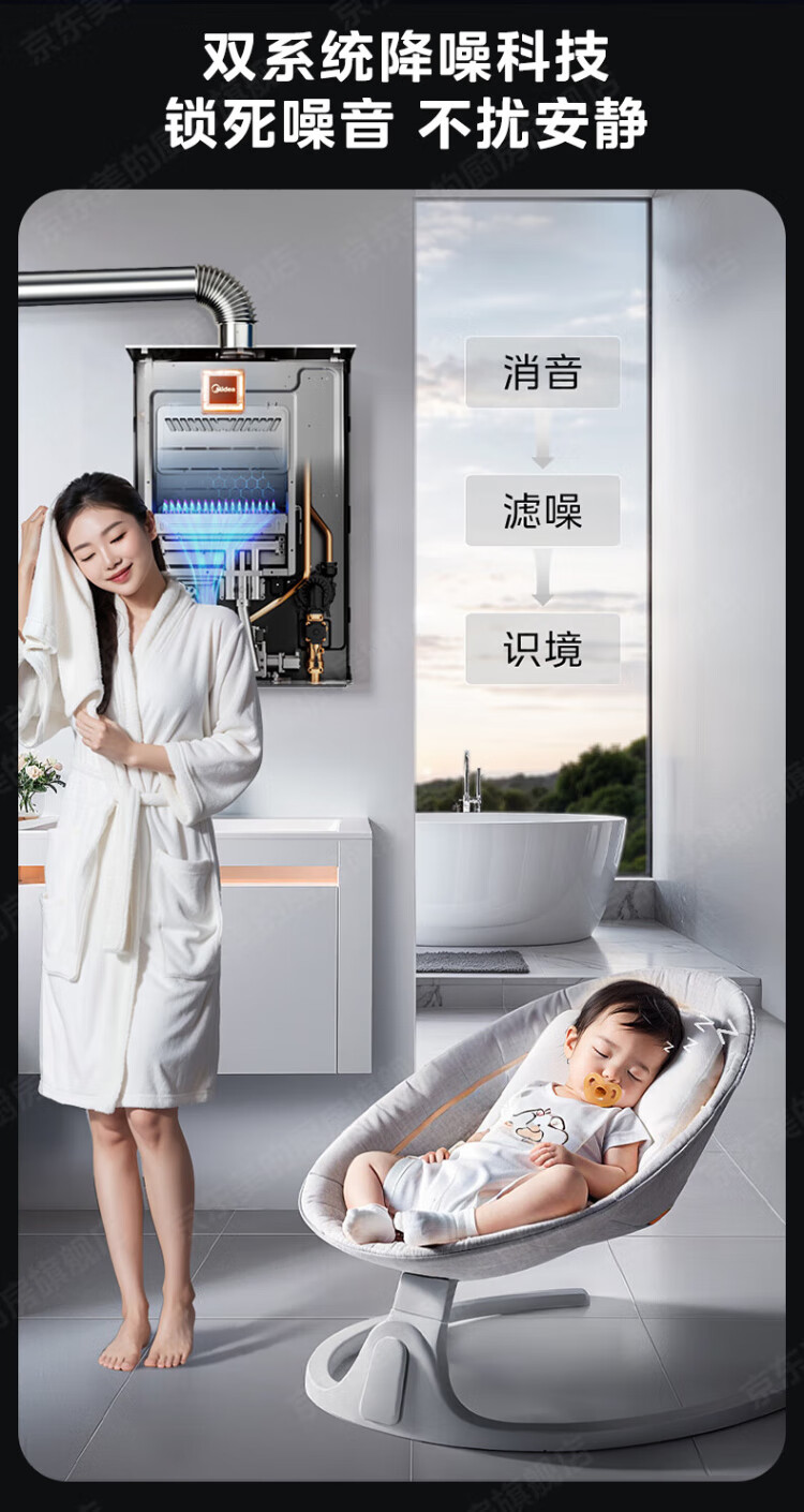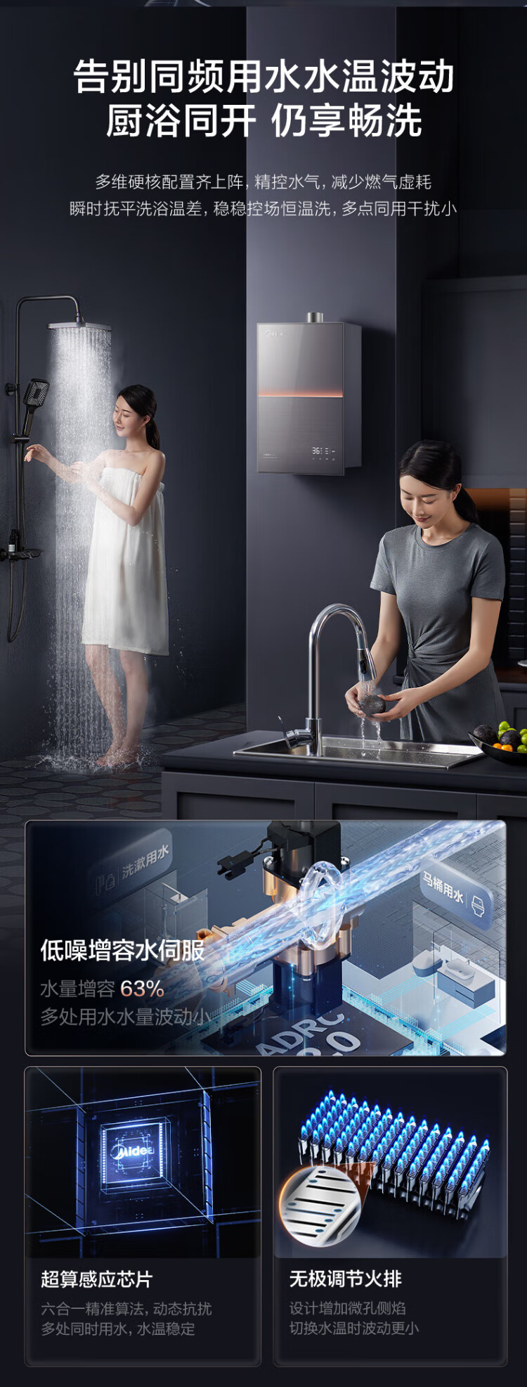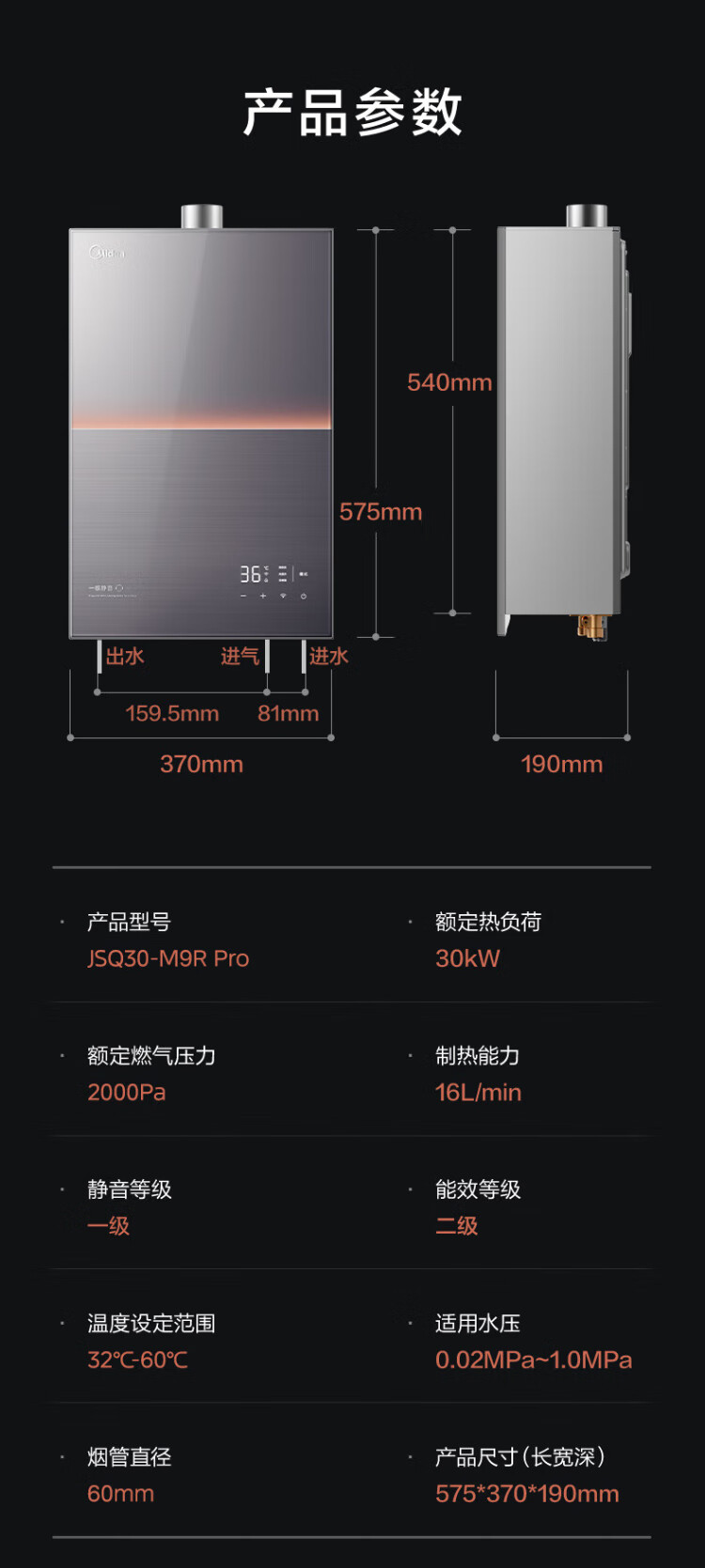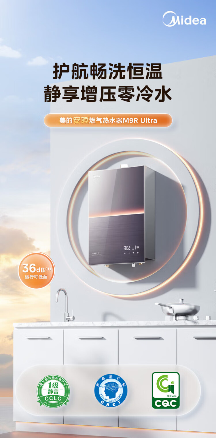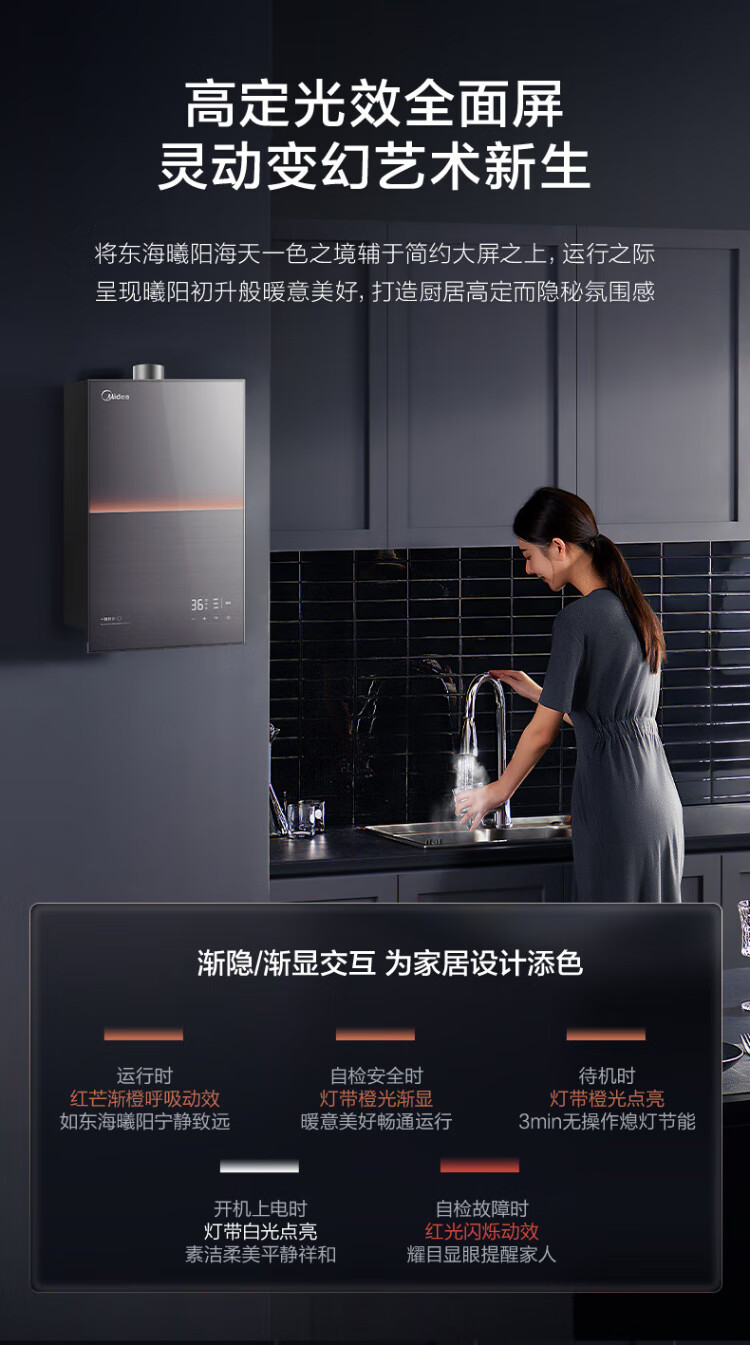 Midea's new product M9RMax gas water heater TSI dual supercharger, three-wheel drive water servo, first-level silent 16-liter natural gas under-mounted fan ECO energy saving, sleep series zero cold feeling 16L TSI dual supercharger M9R Max