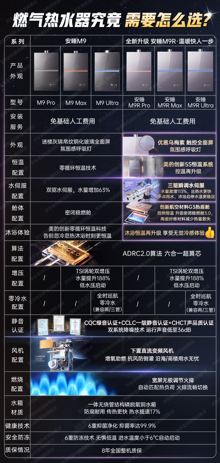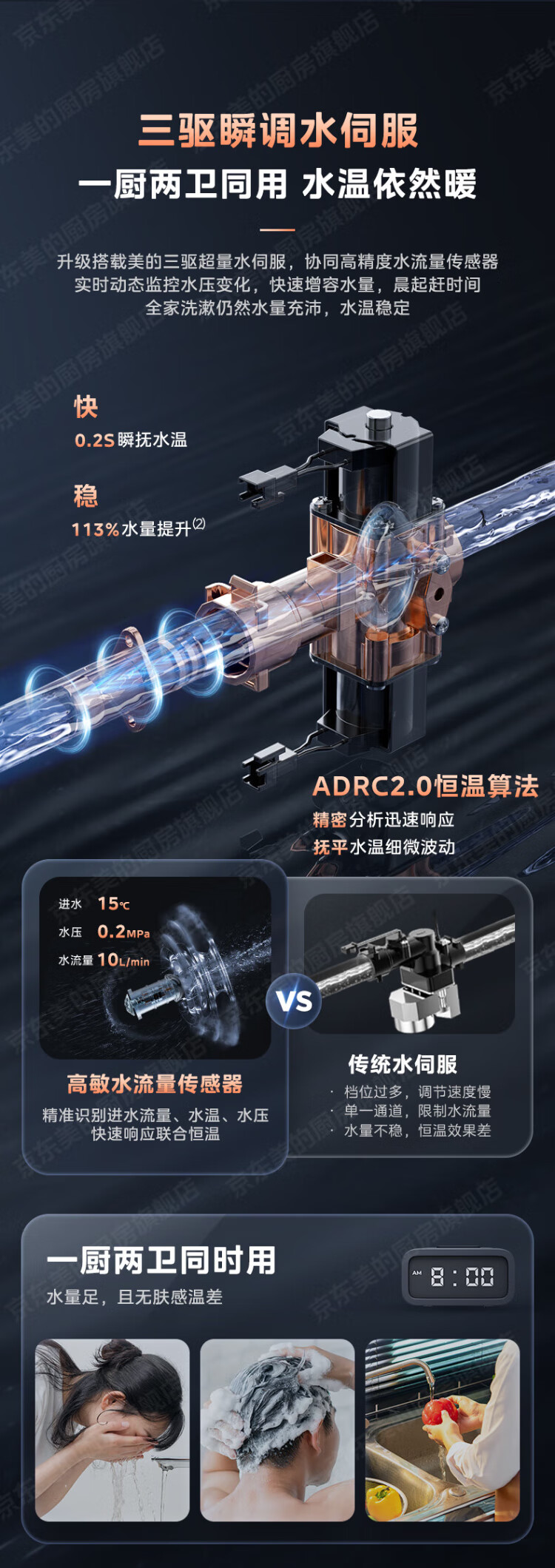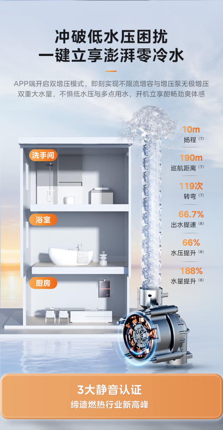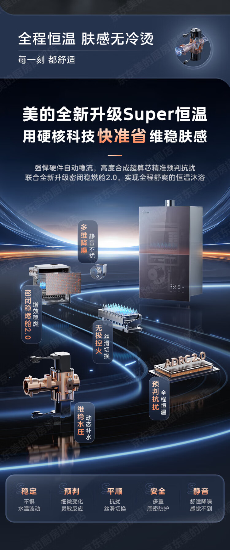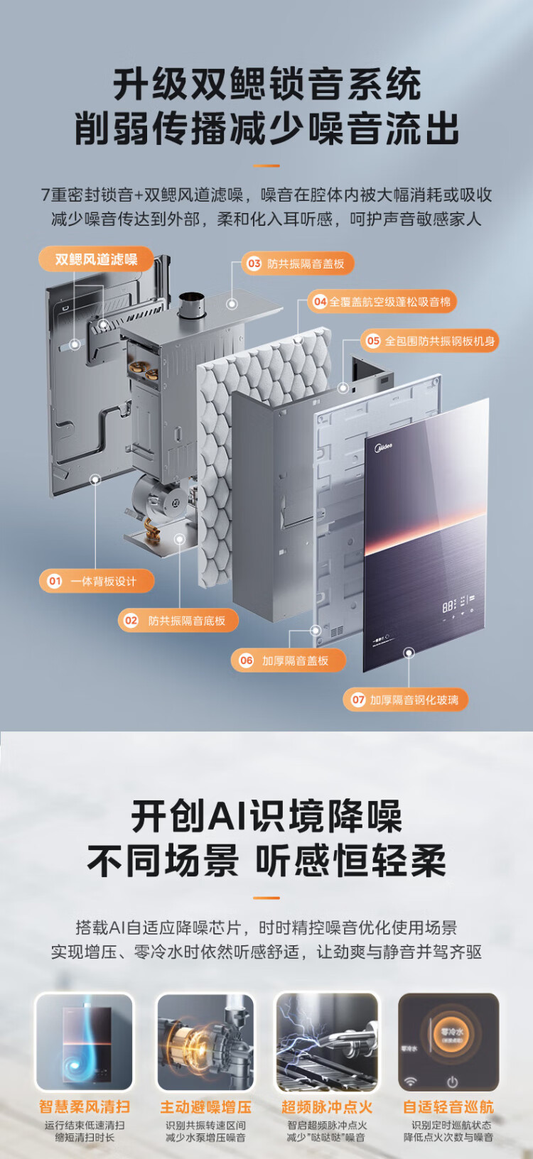 Midea's new product M9RMax gas water heater TSI dual supercharger, three-wheel drive water servo, first-level silent 16-liter natural gas under-mounted fan ECO energy saving, sleep series zero cold feeling 16L TSI dual supercharger M9R Max