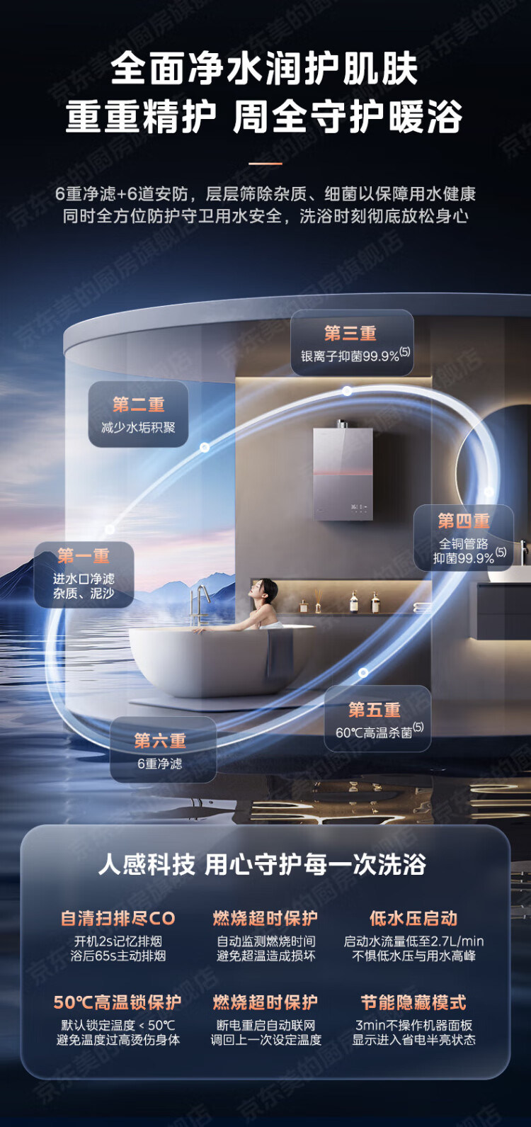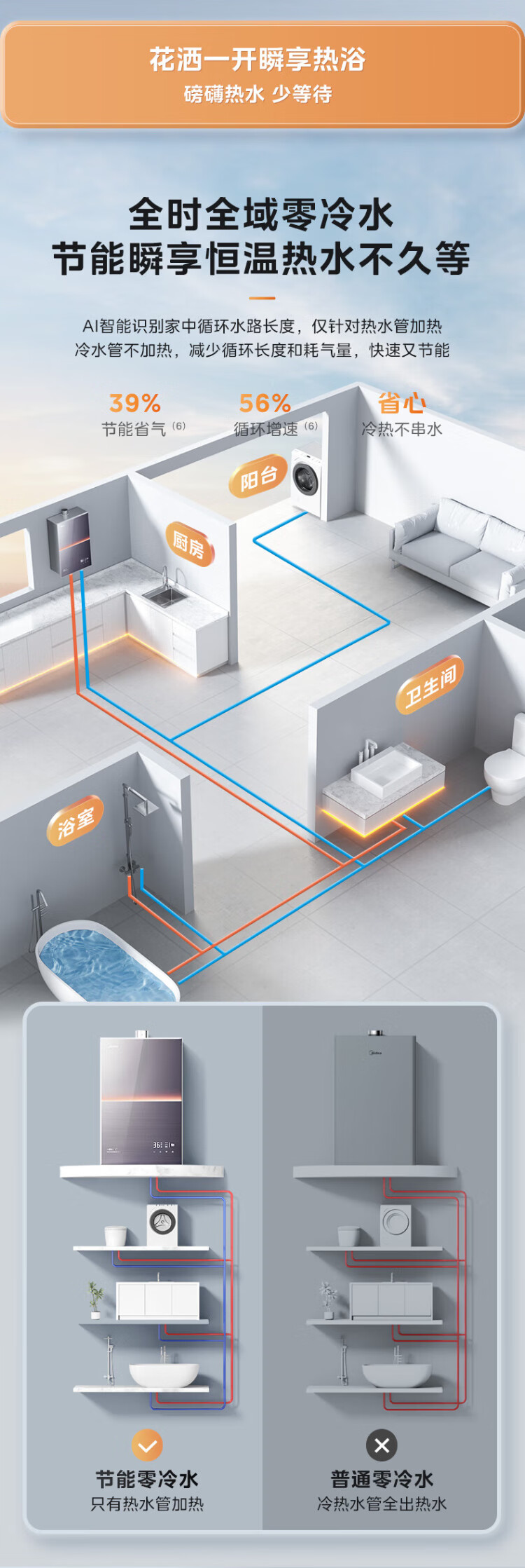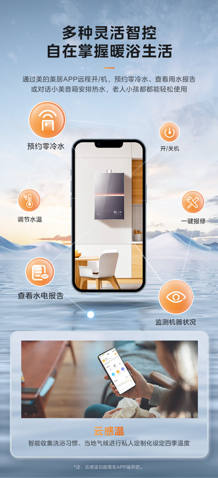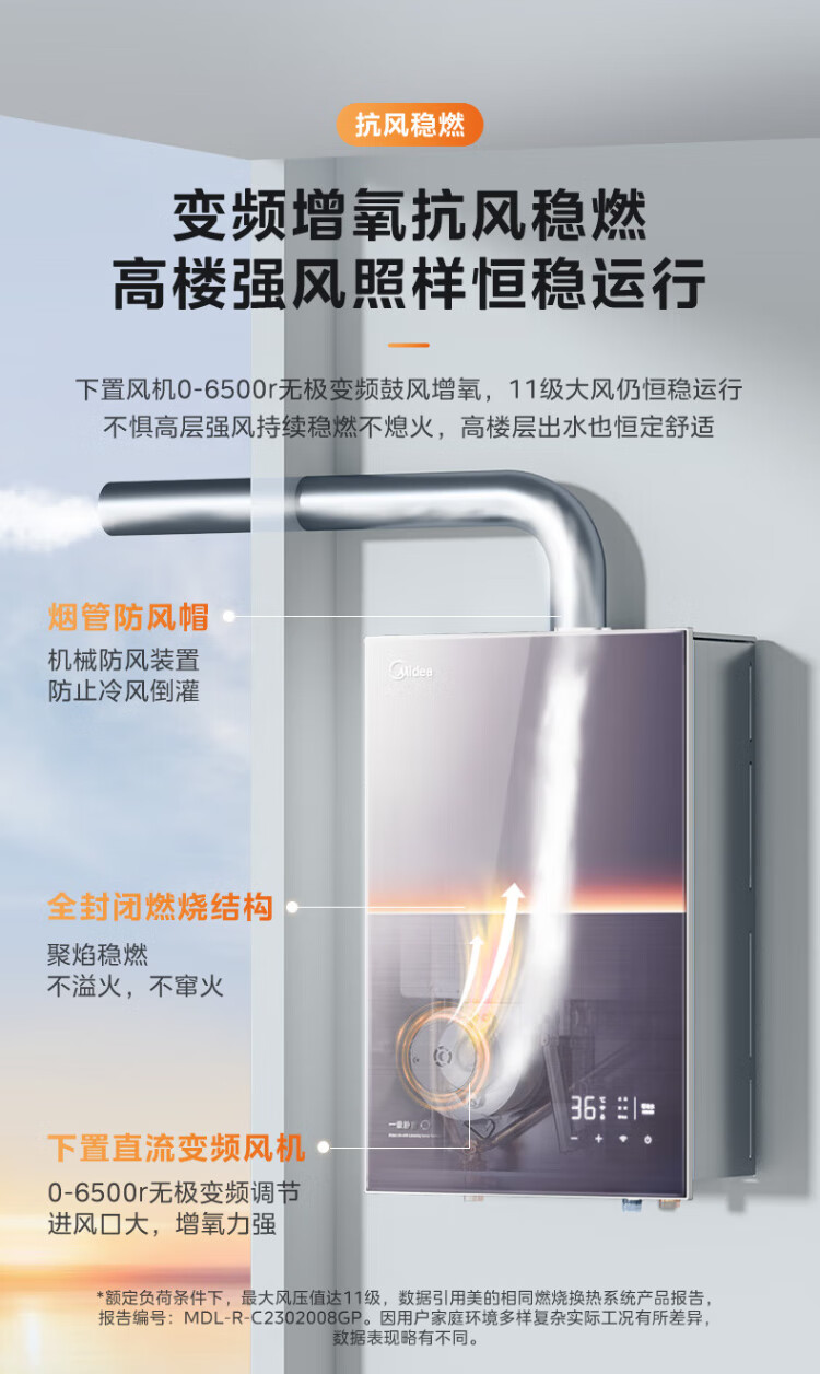 Midea's new product M9RMax gas water heater TSI dual supercharger, three-wheel drive water servo, first-level silent 16-liter natural gas under-mounted fan ECO energy saving, sleep series zero cold feeling 16L TSI dual supercharger M9R Max