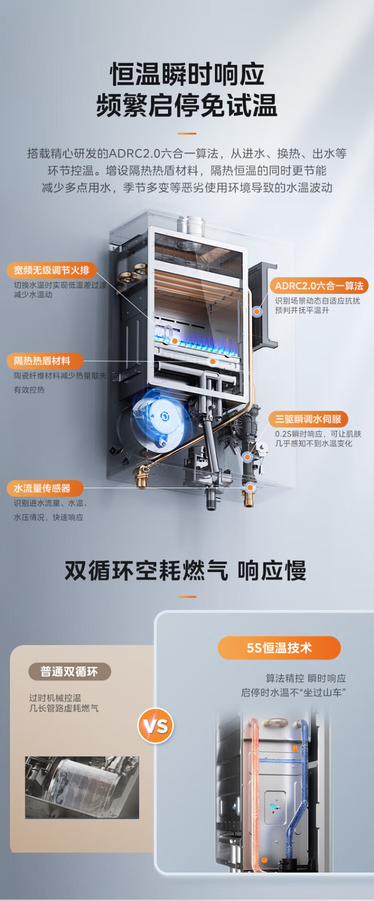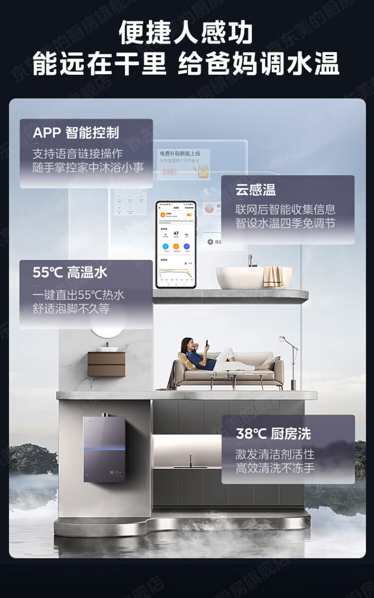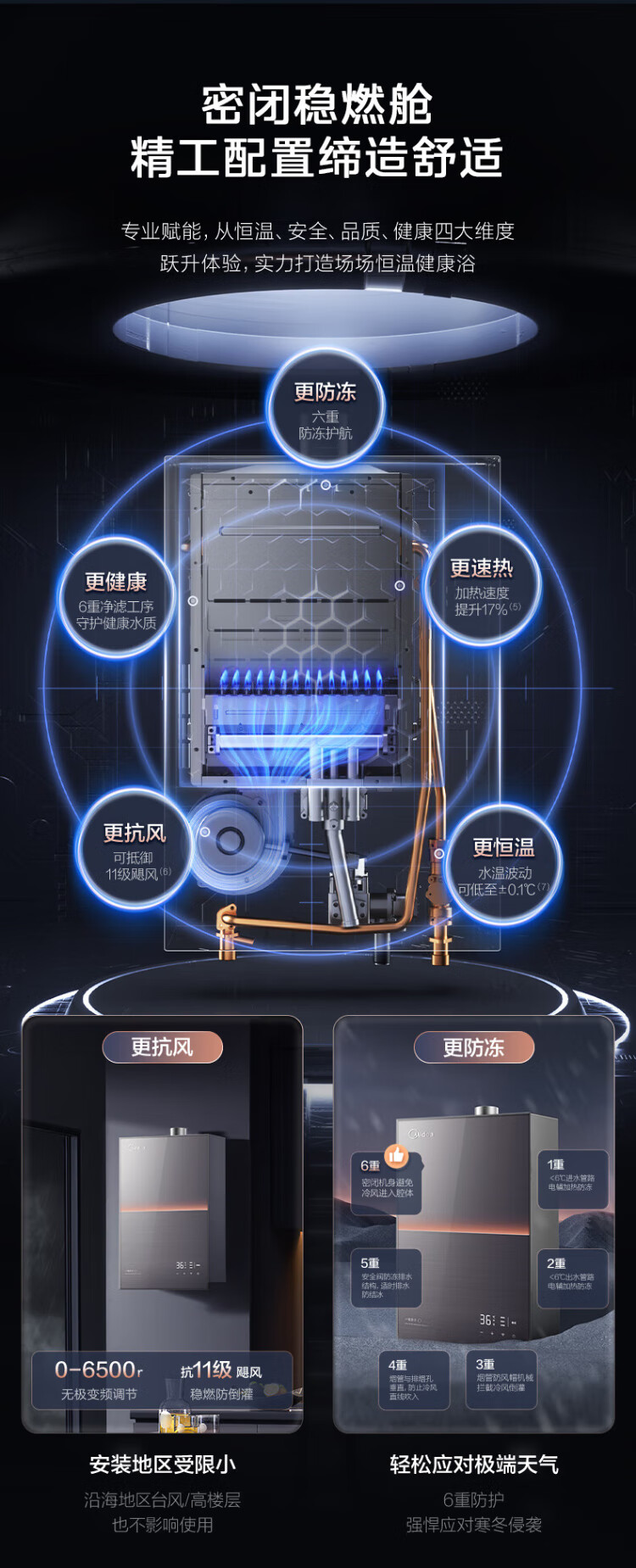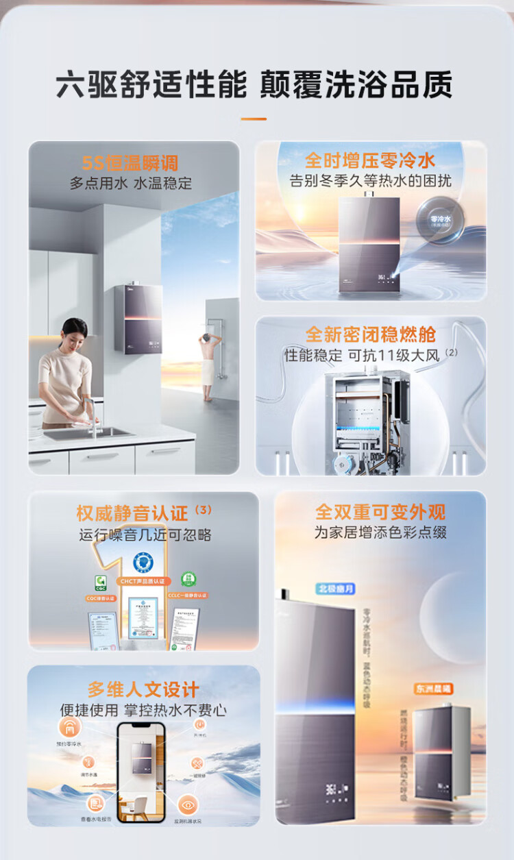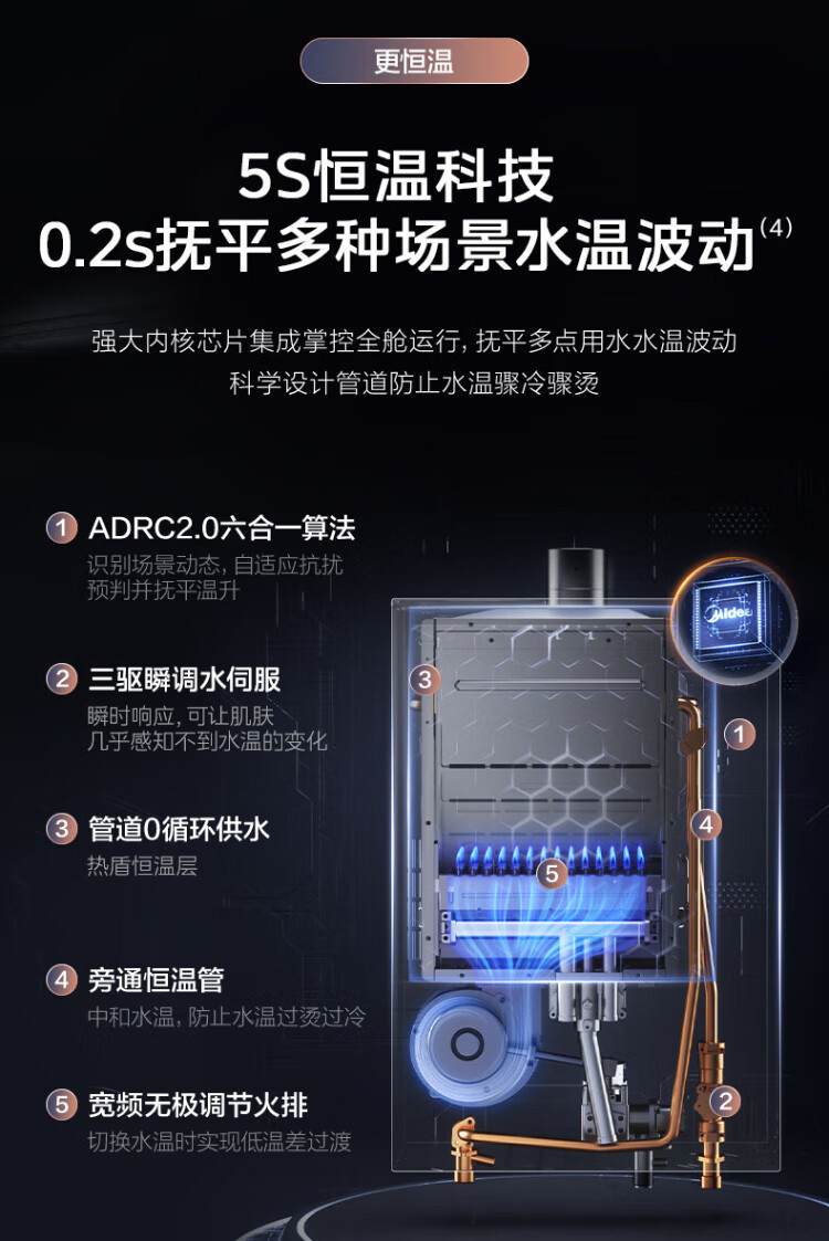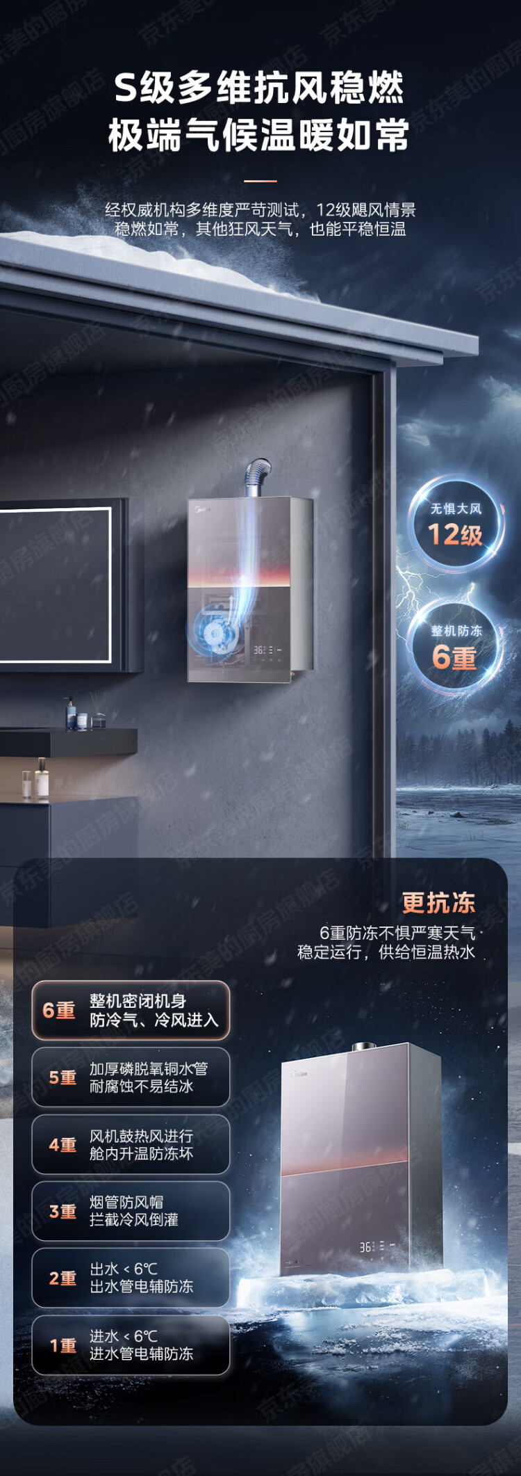 Midea's new product M9RMax gas water heater TSI dual supercharger, three-wheel drive water servo, first-level silent 16-liter natural gas under-mounted fan ECO energy saving, sleep series zero cold feeling 16L TSI dual supercharger M9R Max