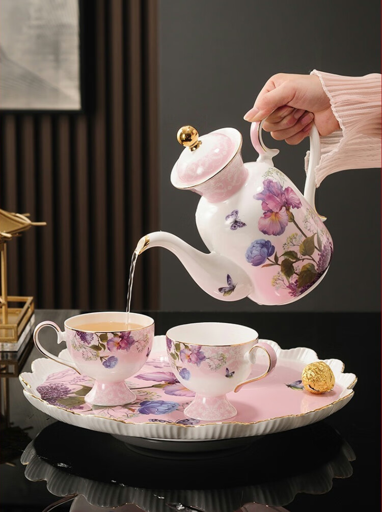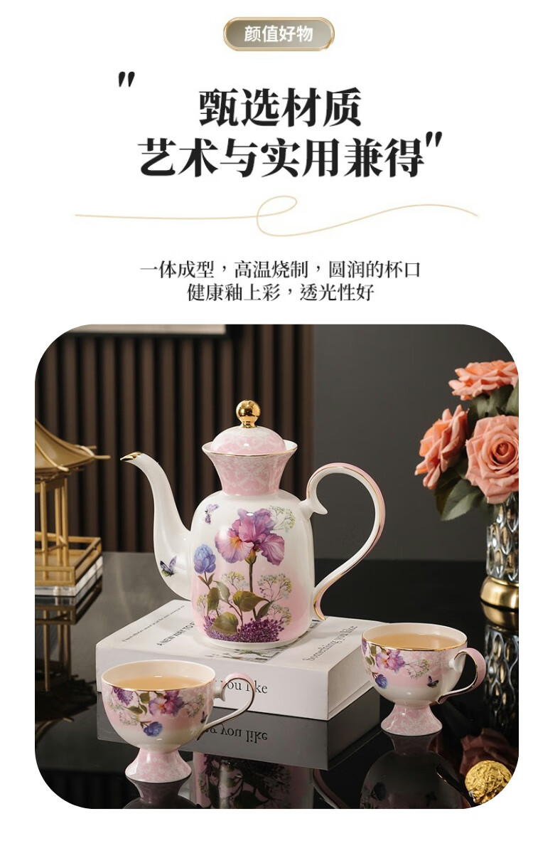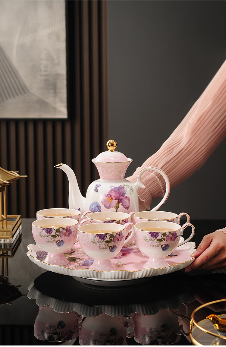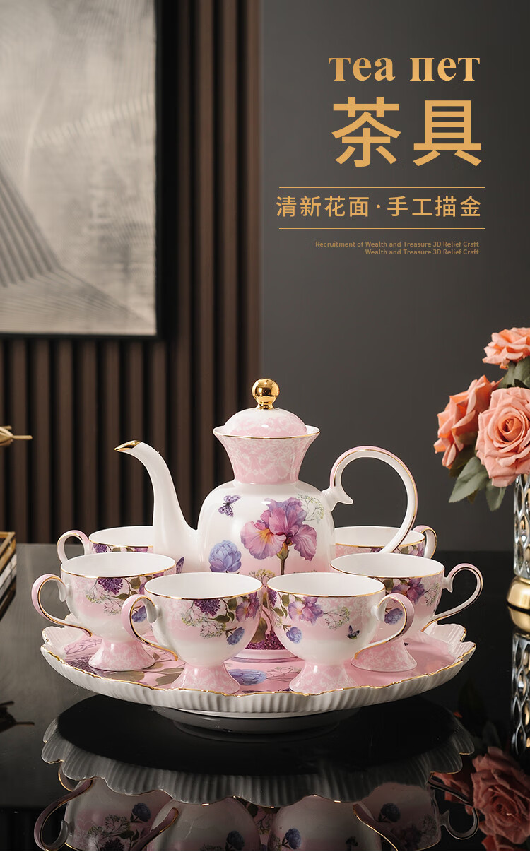 Yanze bone china rotatable water set tea set teapot teacup set opening housewarming gift light luxury high-end gift box bone china peony diffuser set-wooden gift box
