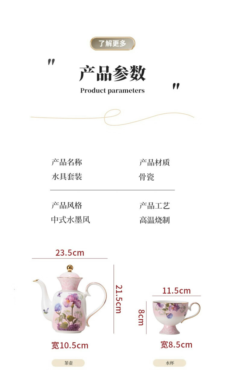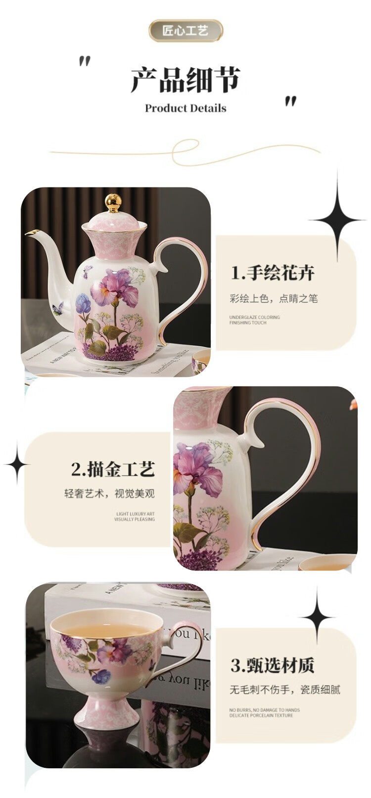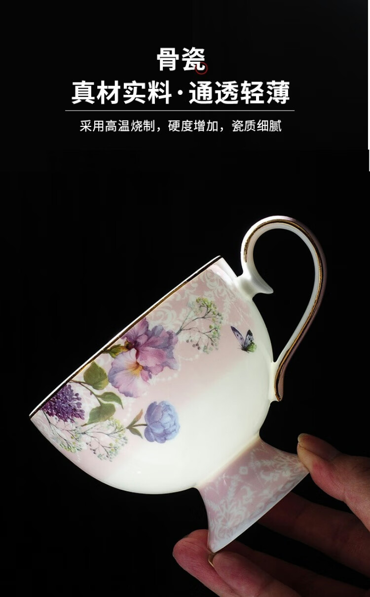 Yanze bone china rotatable water set tea set teapot teacup set opening housewarming gift light luxury high-end gift box bone china peony diffuser set-wooden gift box