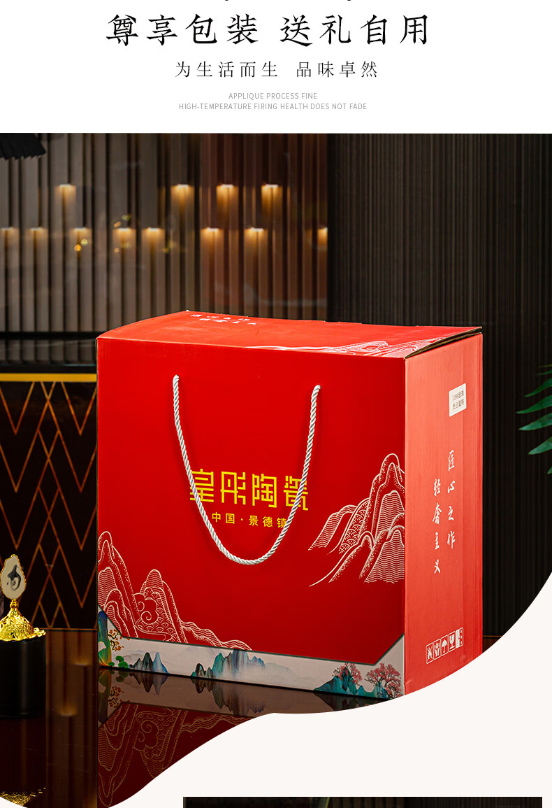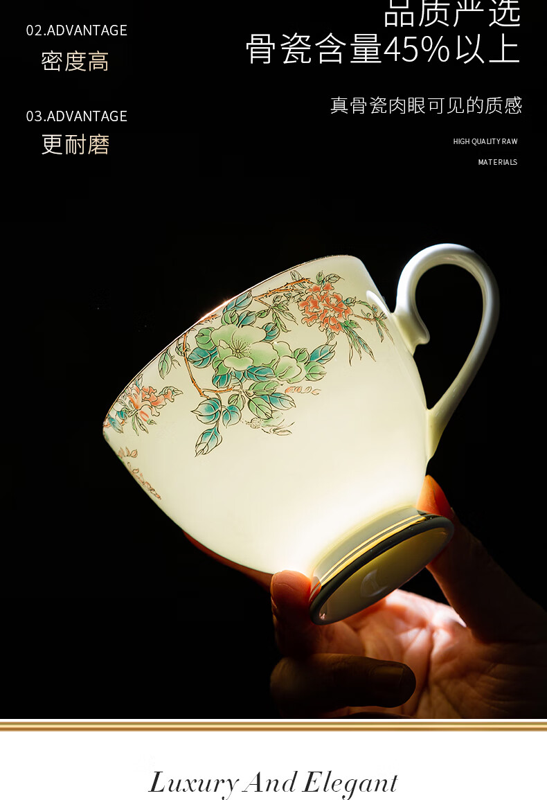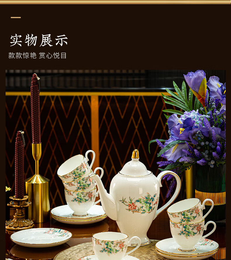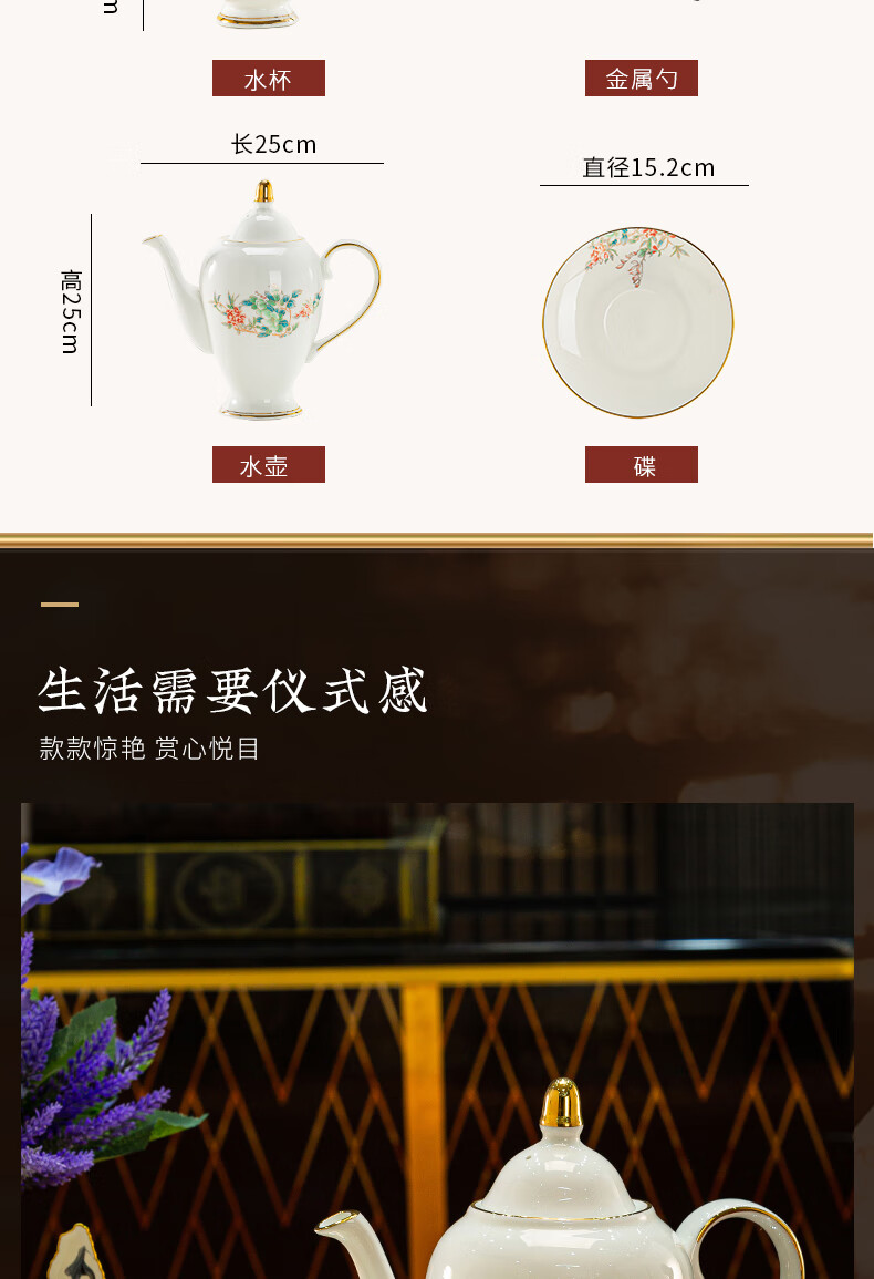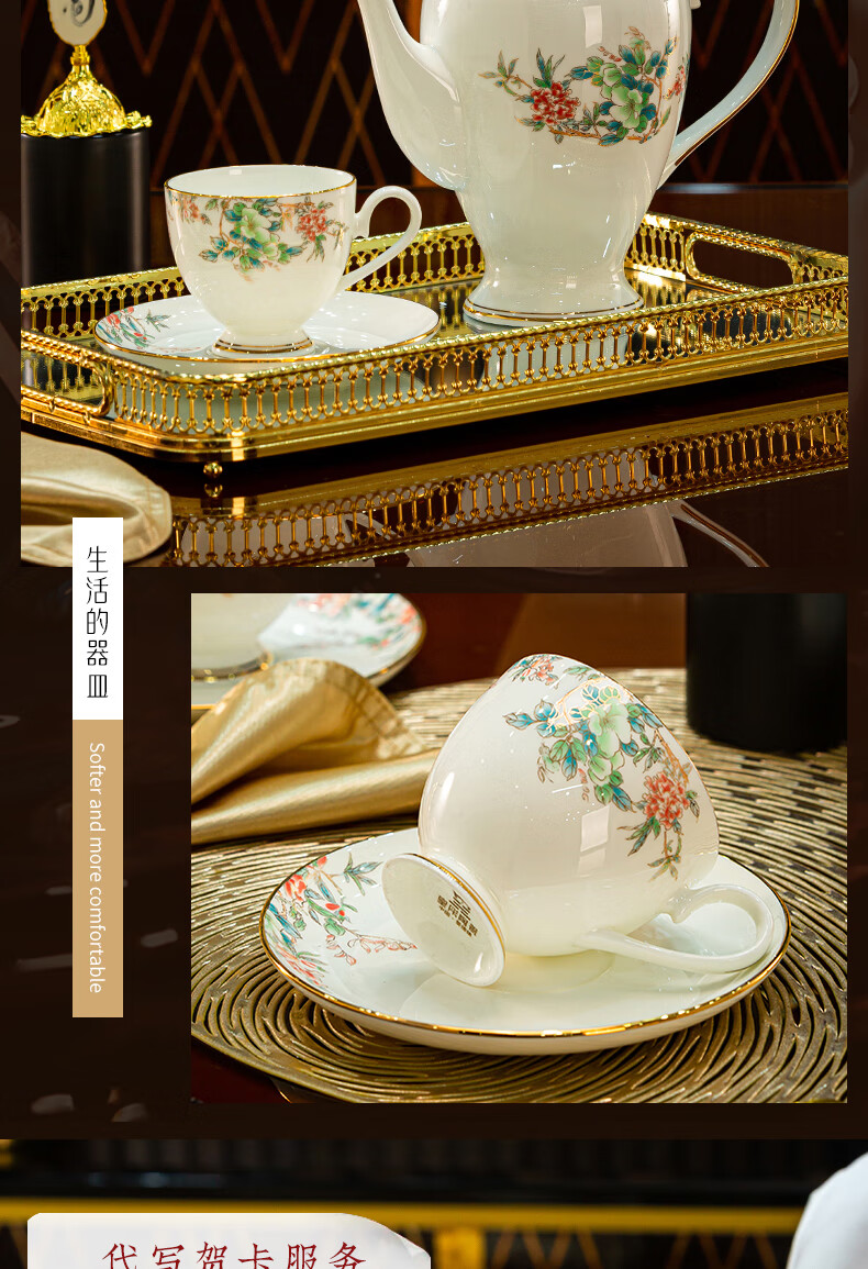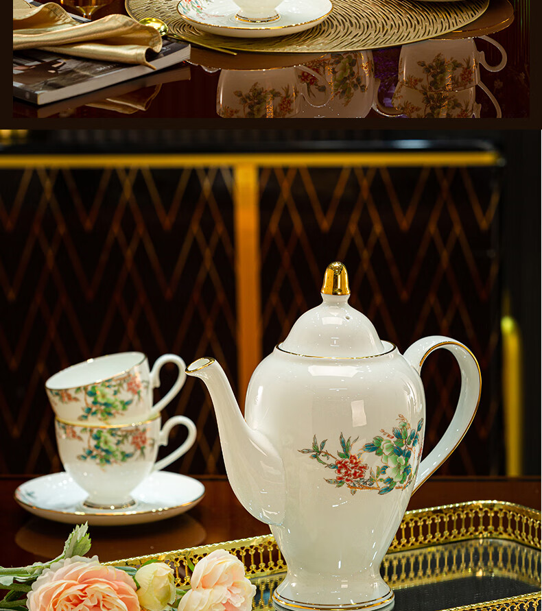 Jingqiu underglaze color high-end water set Jingdezhen high temperature bone china tea set water cup kettle complete set household gift box underglaze color flowery water set 13 pieces