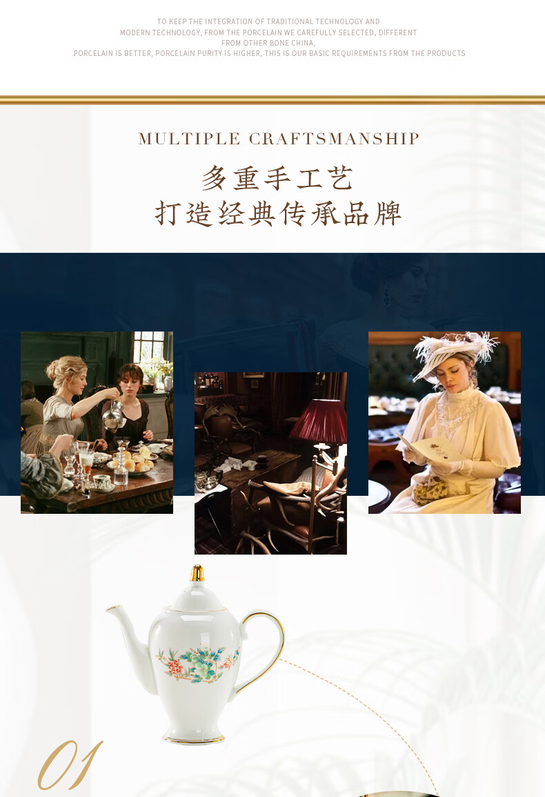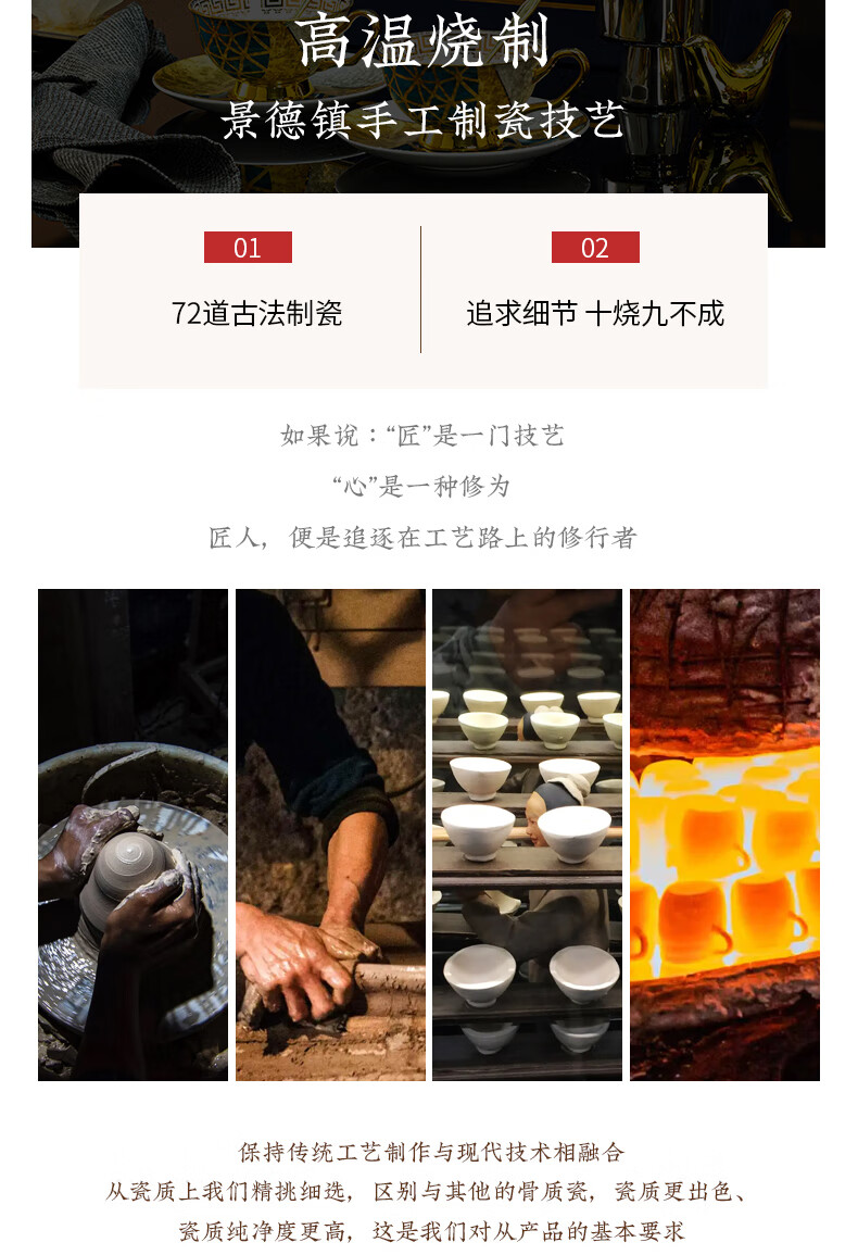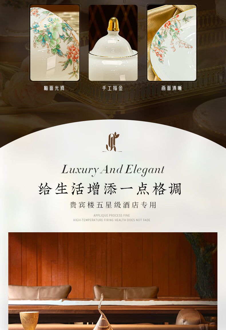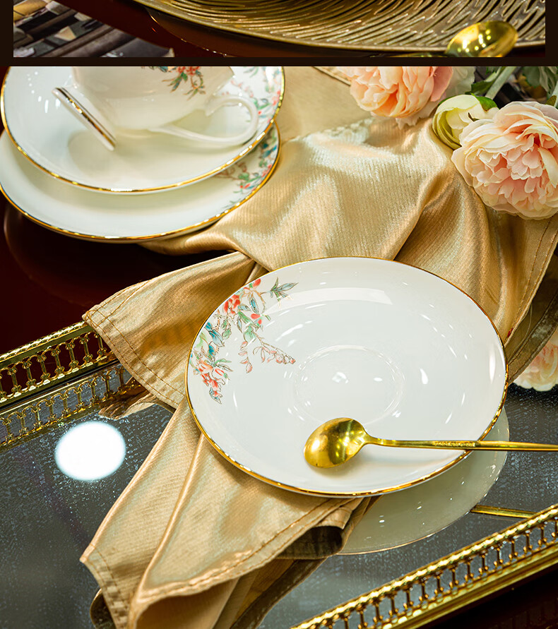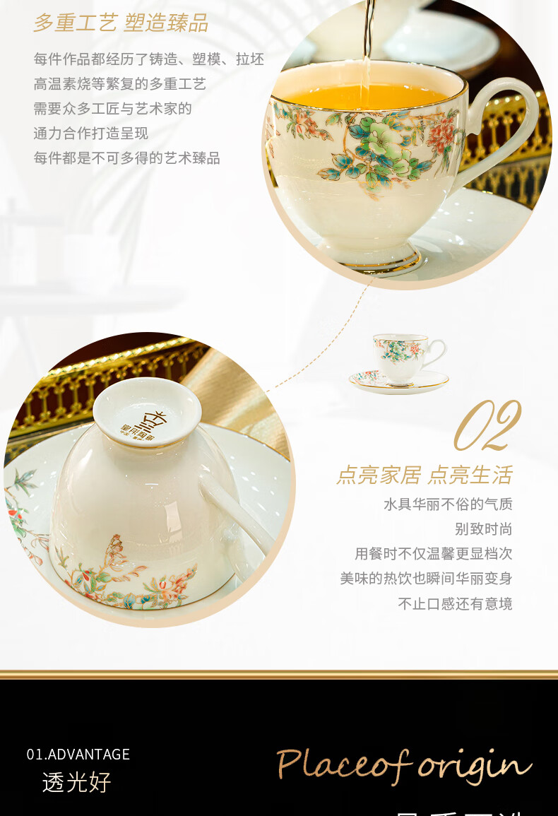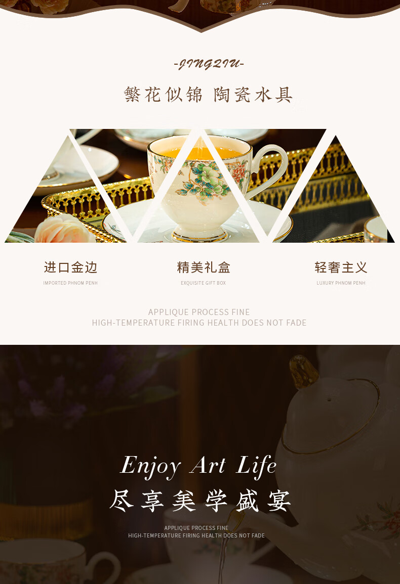 Jingqiu underglaze color high-end water set Jingdezhen high temperature bone china tea set water cup kettle complete set household gift box underglaze color flowery water set 13 pieces
