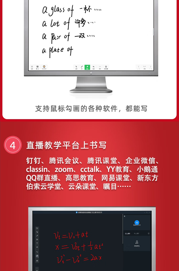 蒙以 大师纸笔手写板网上授课 直播 微课制作纸屏同步场网络教学连电脑写字 蒙以手写板专用笔芯(20支装)