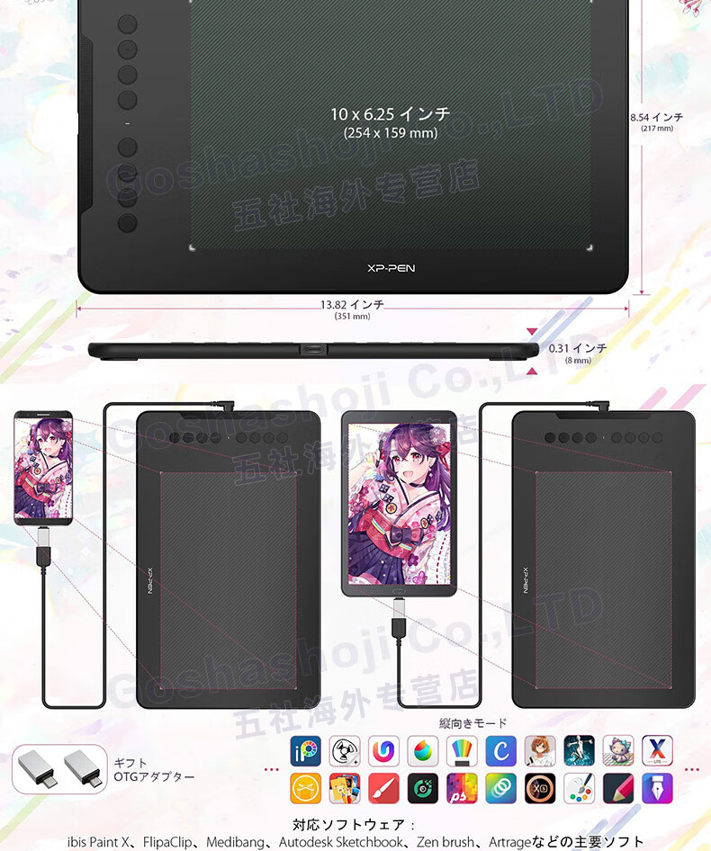 XP-Pen【日本直邮】XP-Pen数位屏/数位板 手绘板绘画屏 网课手写板 写字板电子绘板 Deco 01 V2【插画纪念版】