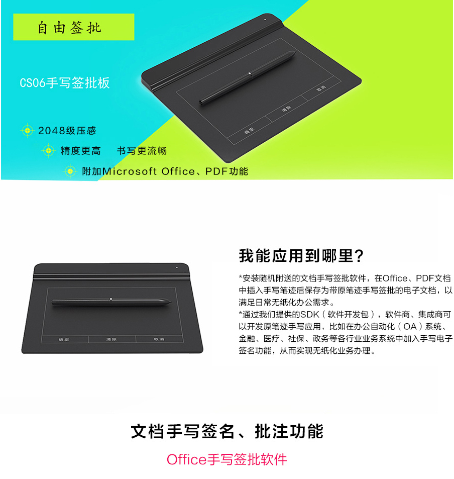汉王(Hanvon) 汉王友基签字板CS03手写板电子签名屏数位板原笔迹批注营业厅支持浏览器二次开发 汉王友基CS03(商家发货)