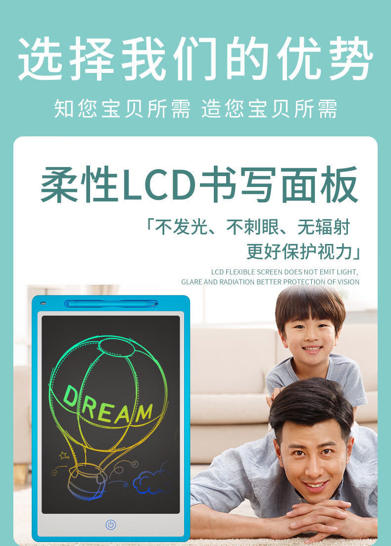 莱迹适用于画板液晶手写板黑板贴家用可擦写玩具写字板 梦话粉色+高清护眼彩色屏 18寸防摔屏18.5*28.5厘米
