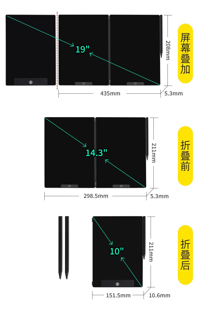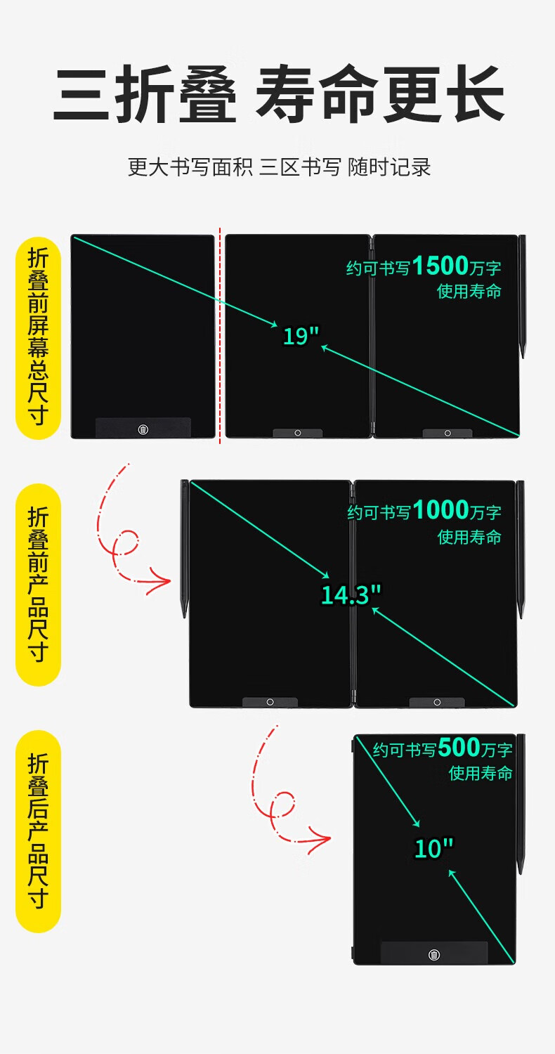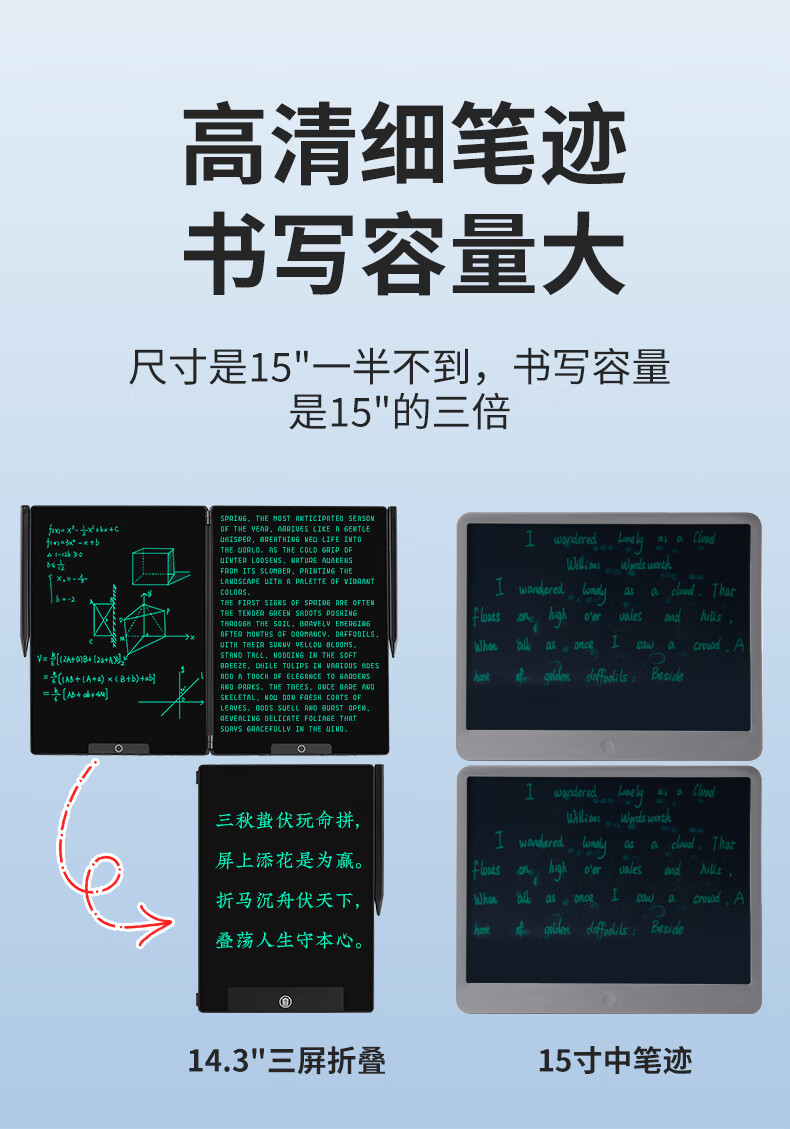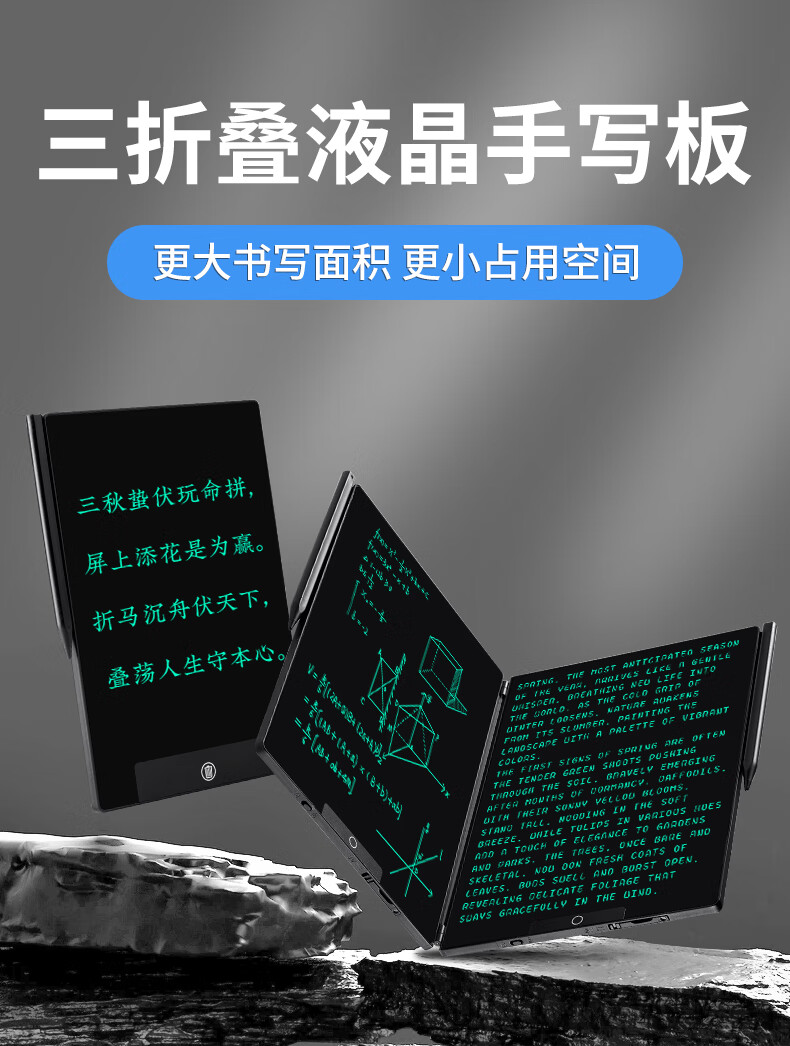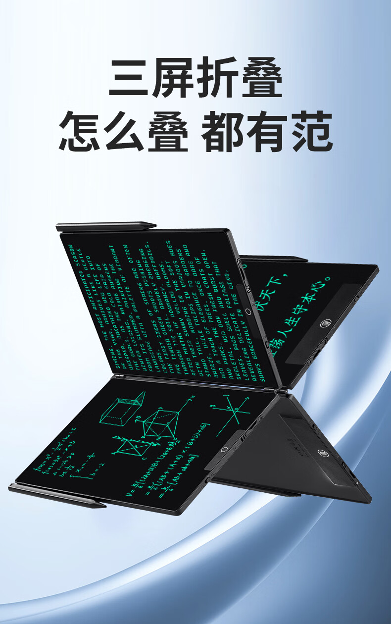 PBJ2025新款三屏折叠细笔迹液晶手写板分开删除写字板电子草稿板办公电子屏黑板可消除 【中国红礼盒】14.3英寸三面屏折叠款